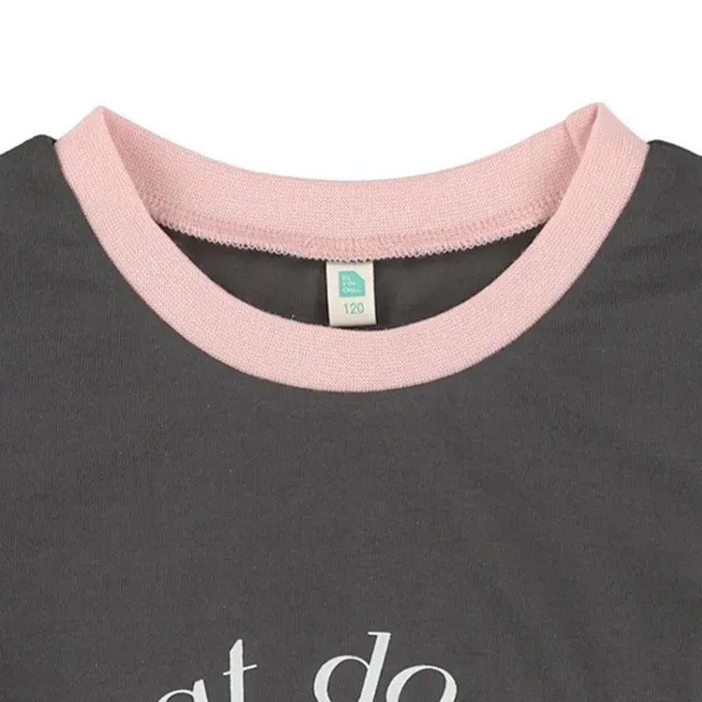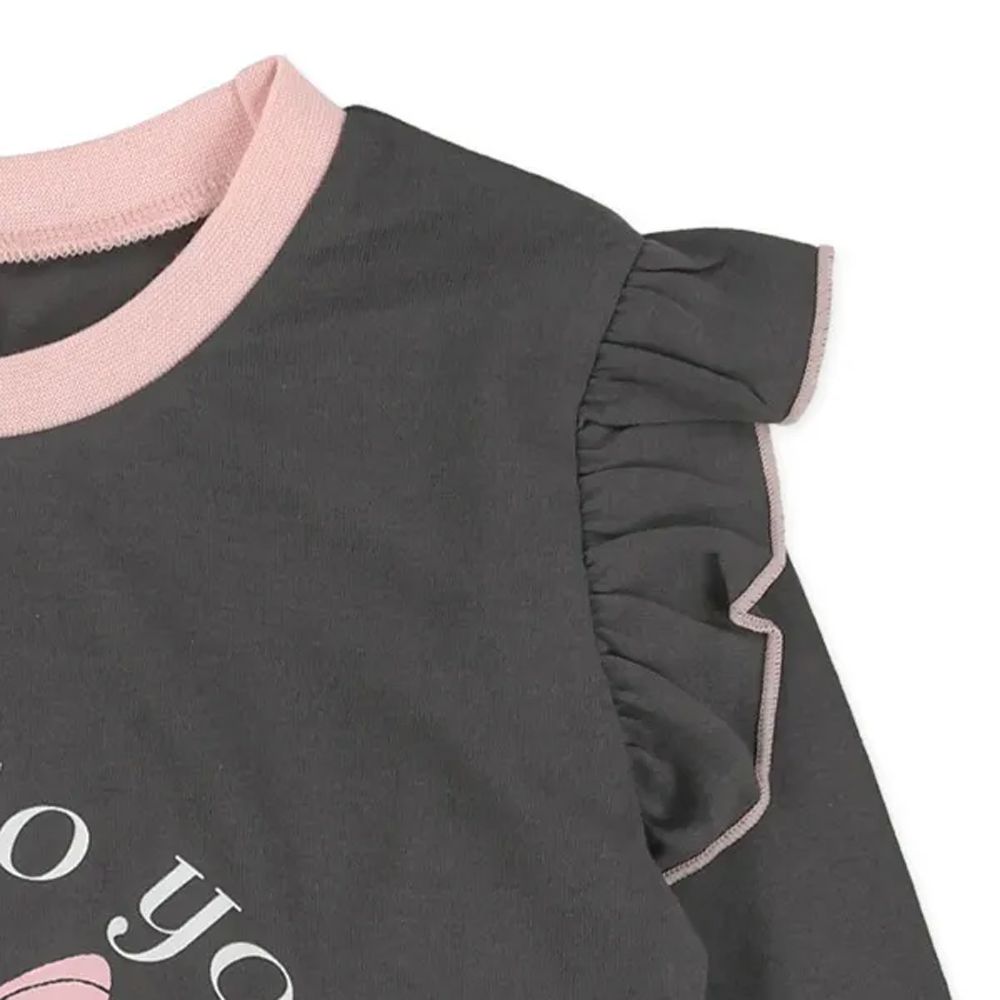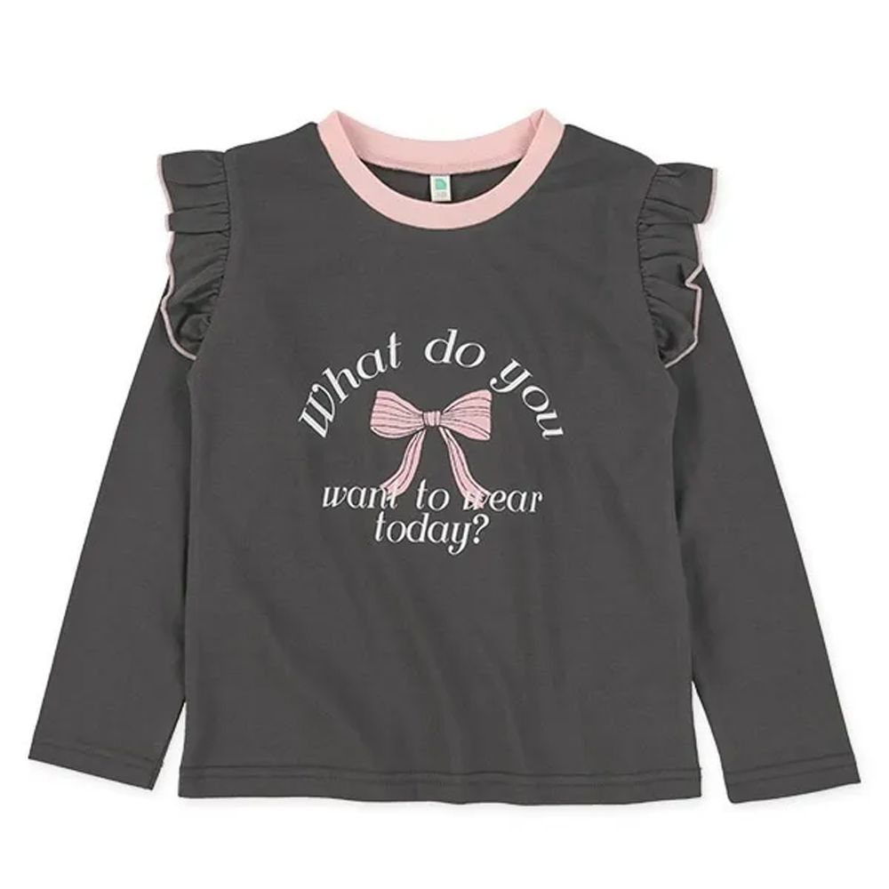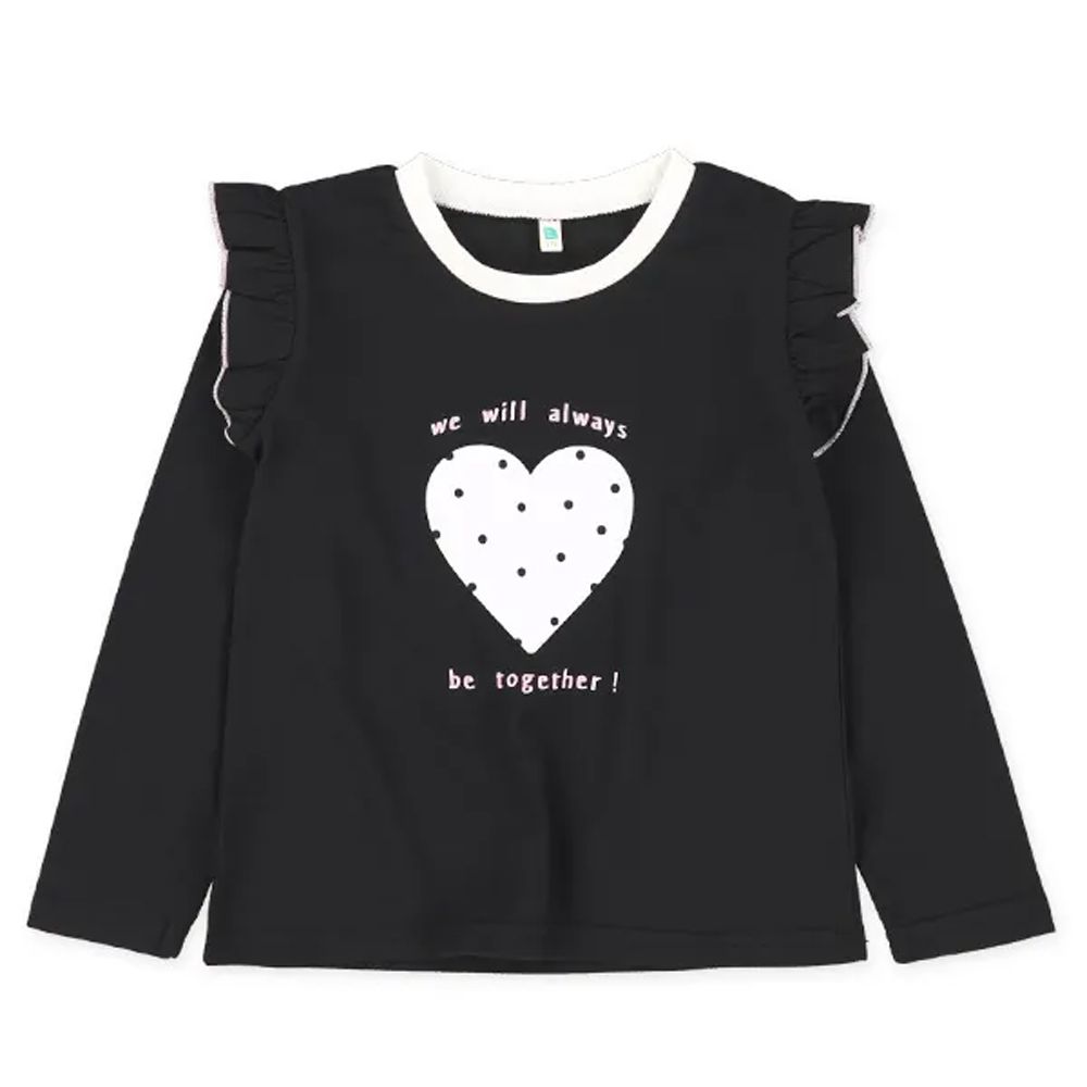 日本西松屋 - 荷葉肩少女印花長袖上衣-愛心-黑
