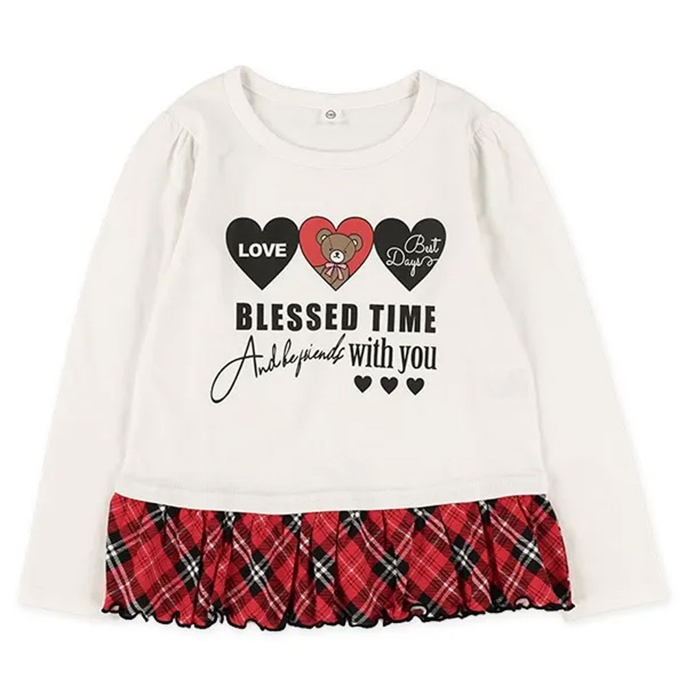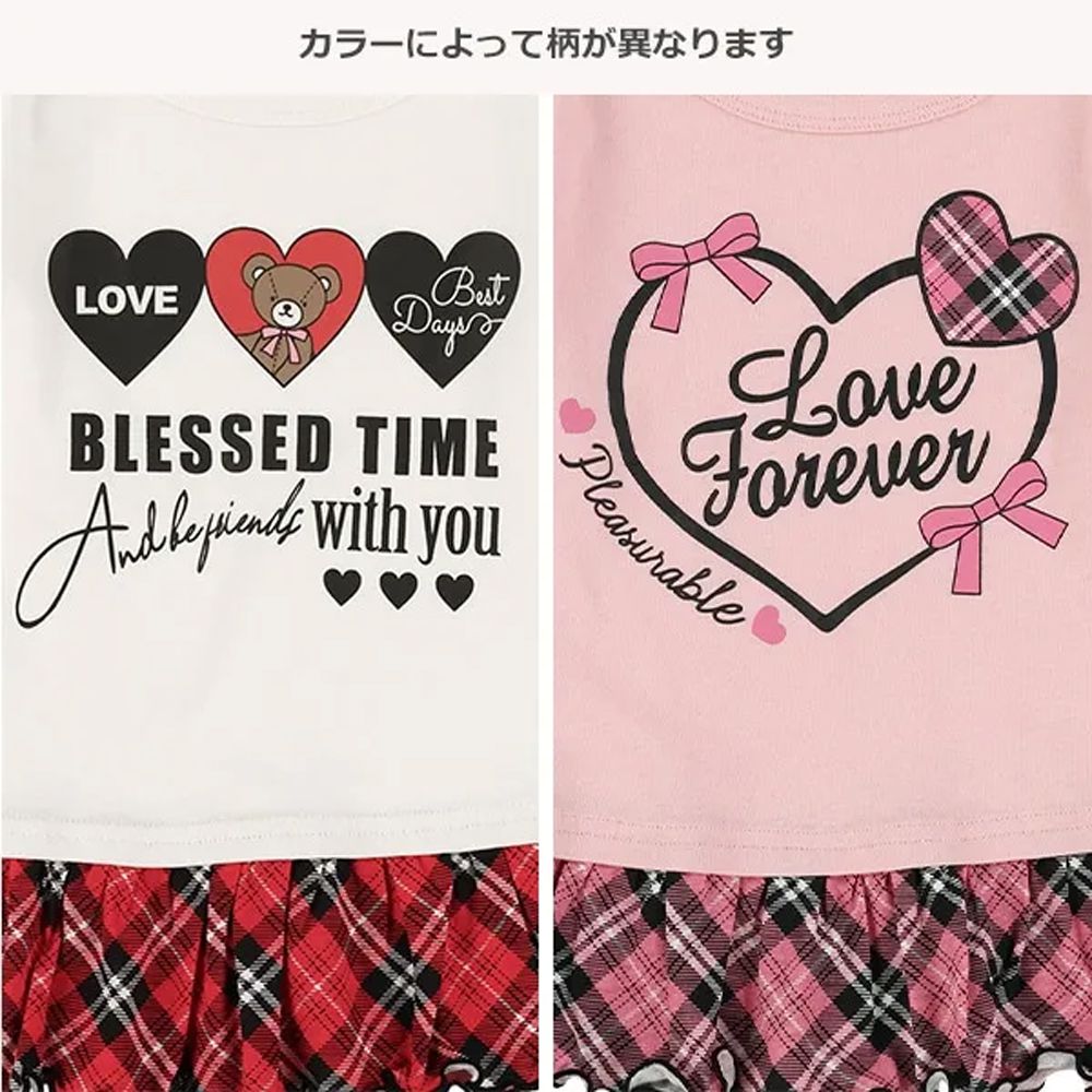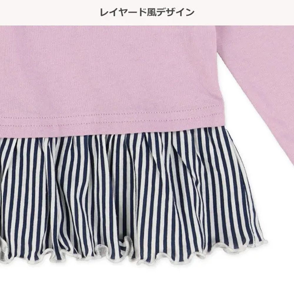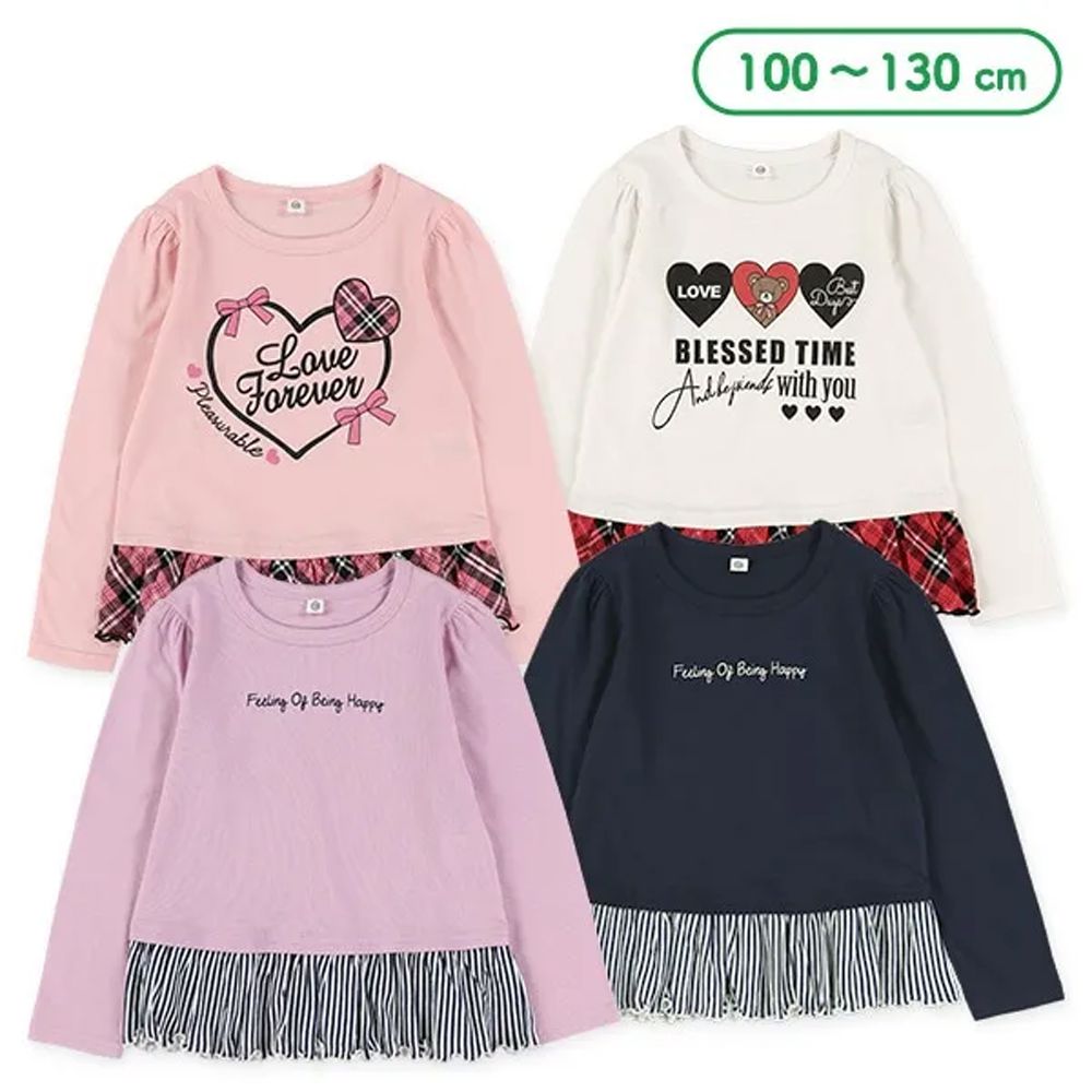 日本西松屋 - 可愛感下擺拼接長袖上衣-愛心蝴蝶結-粉紅