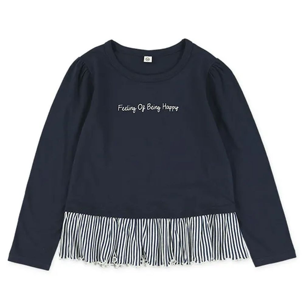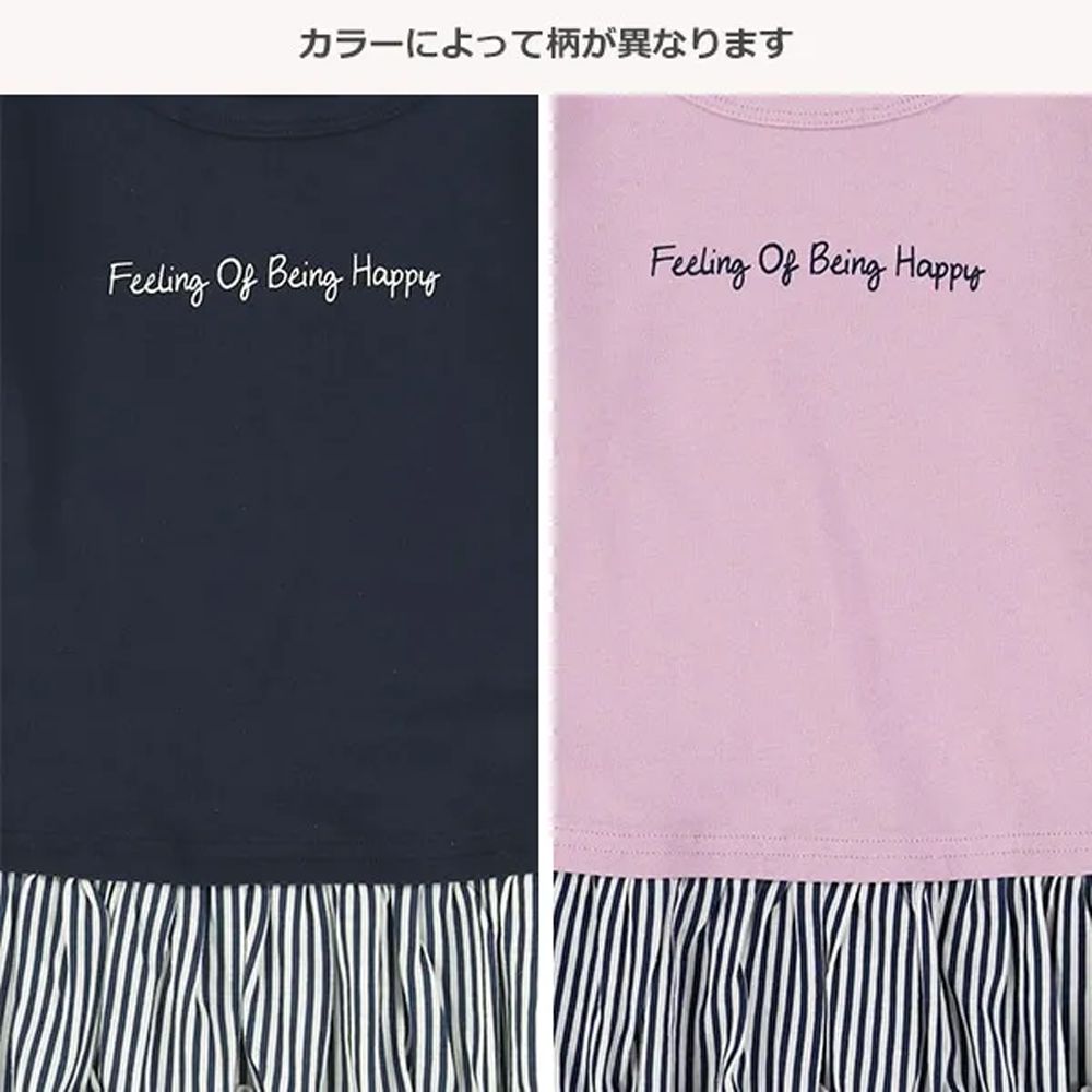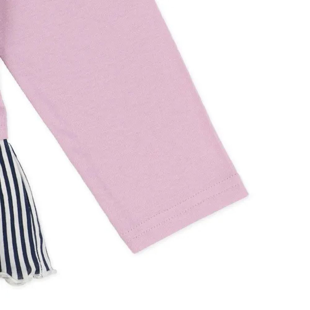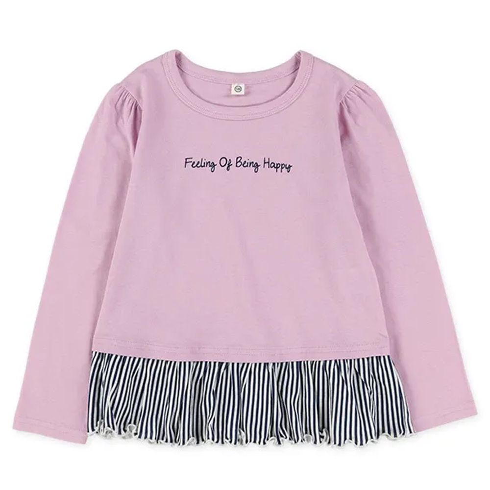 日本西松屋 - 可愛感下擺拼接長袖上衣-愛心蝴蝶結-粉紅