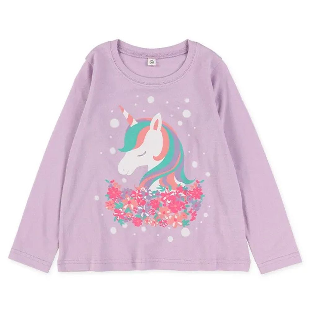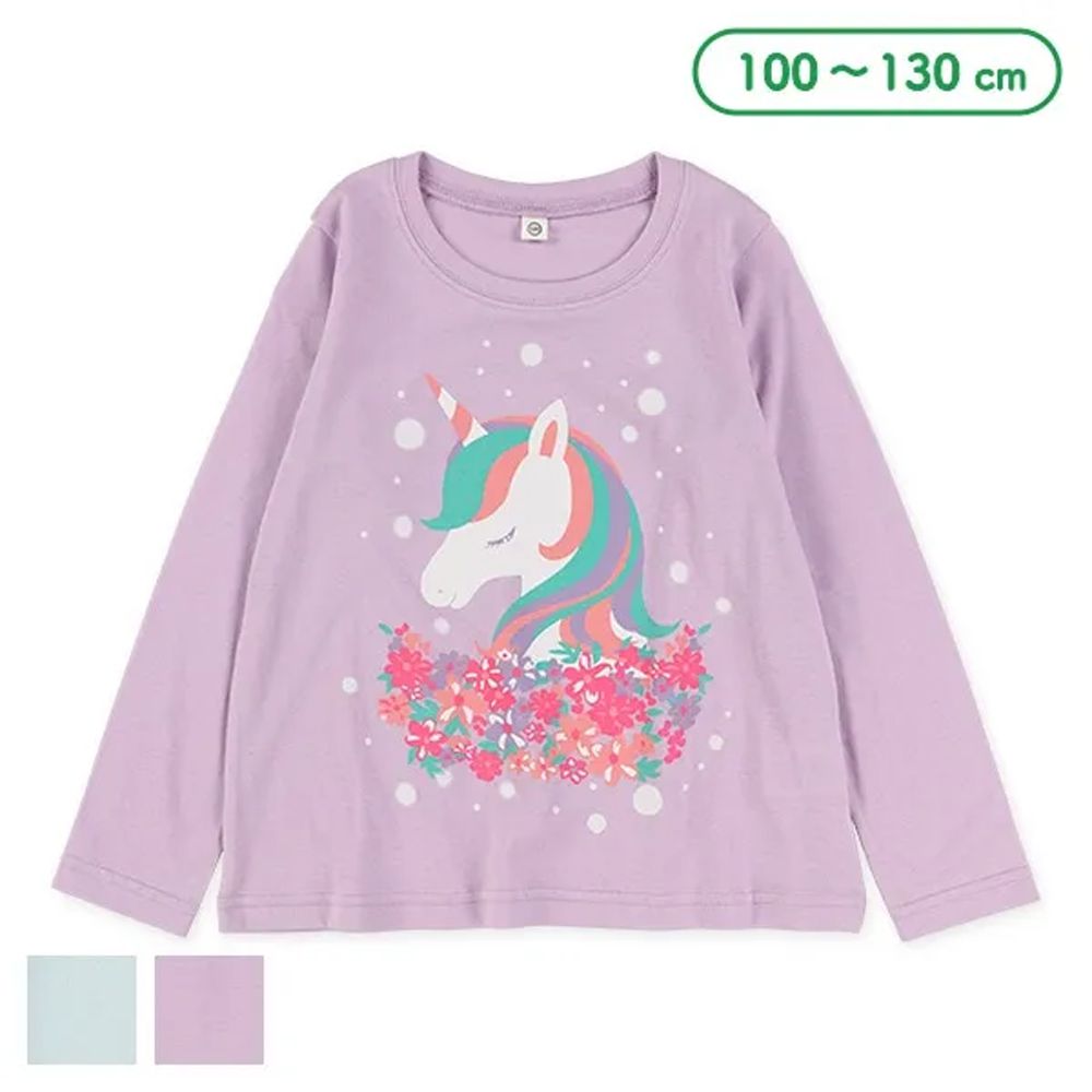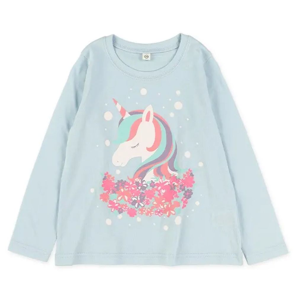 日本西松屋 - 純棉浪漫獨角獸印花長袖上衣-水藍