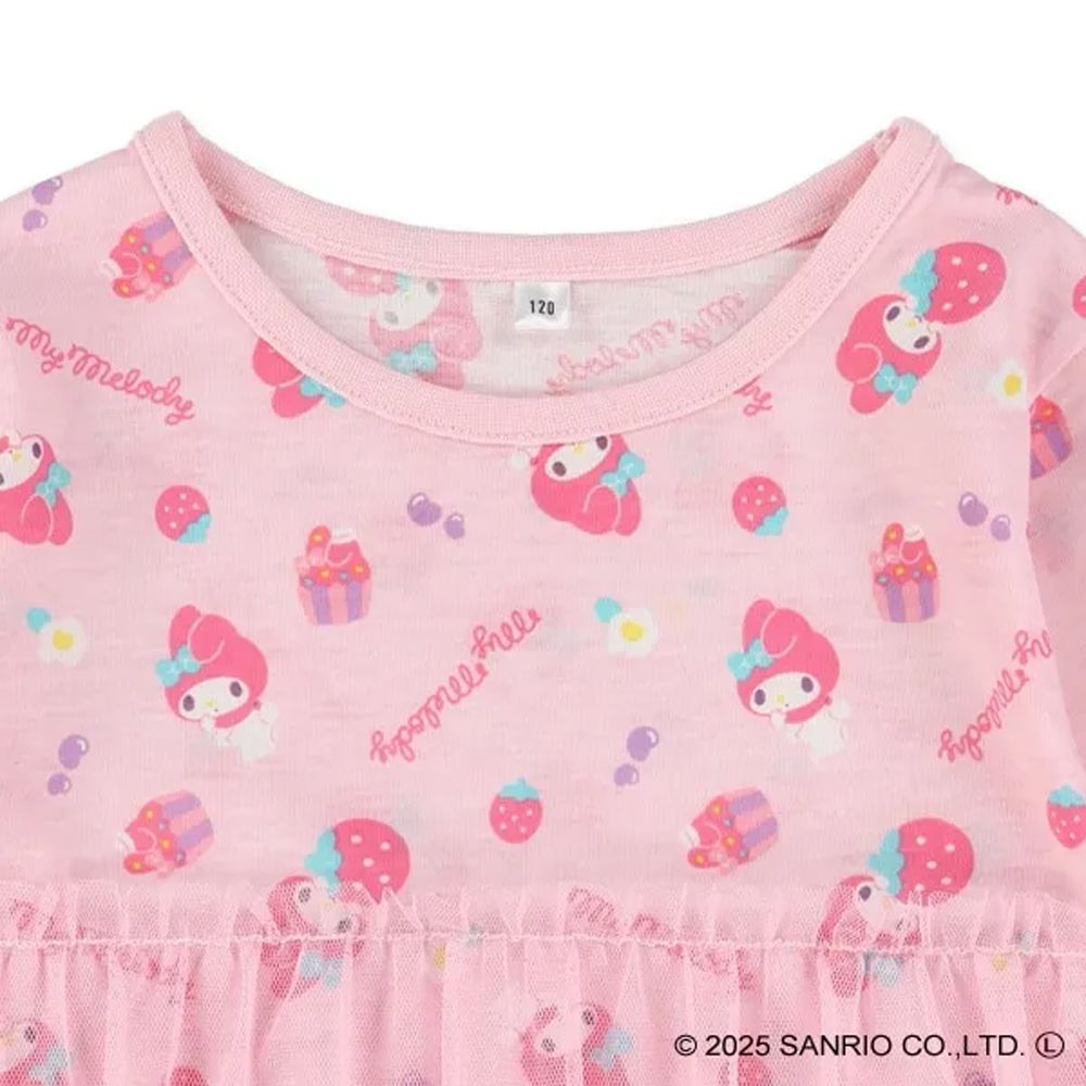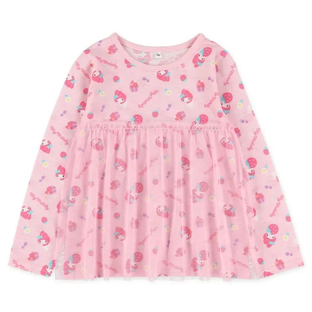 日本西松屋 - 最愛角色滿版印花薄紗長袖上衣-粉紅