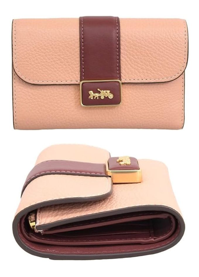 馬車LOGO荔枝紋皮革中夾 (粉桔)