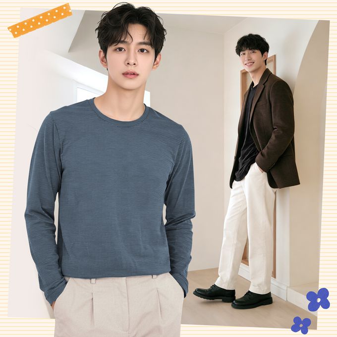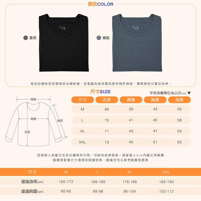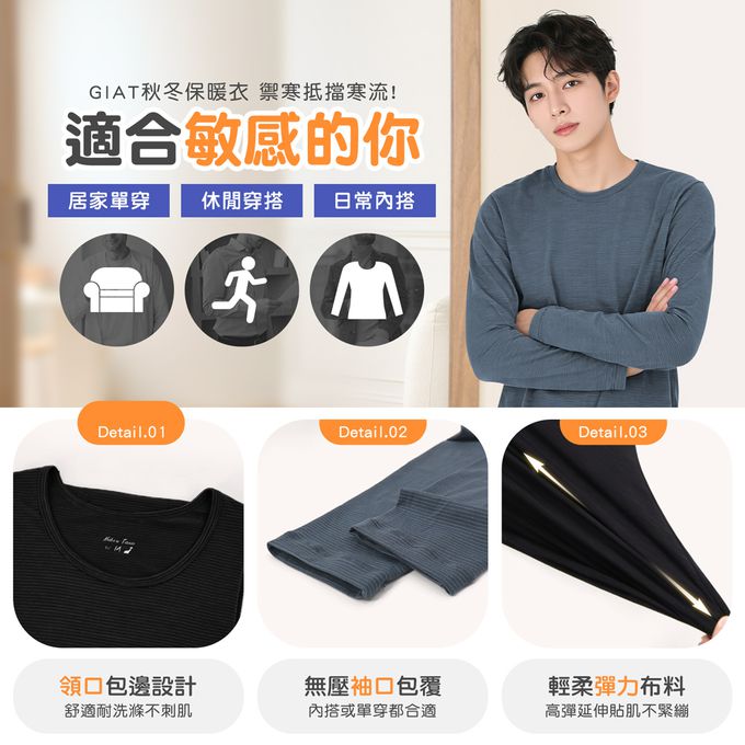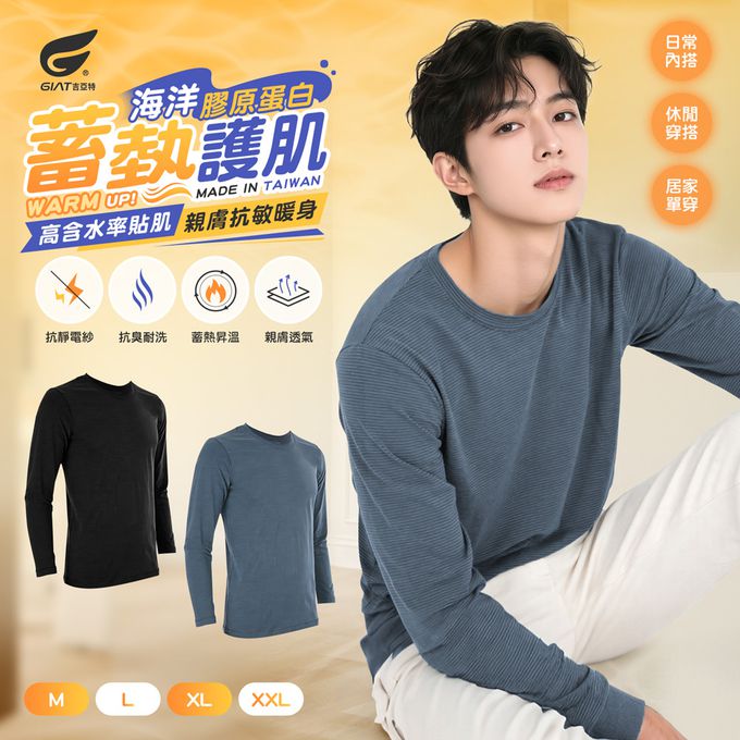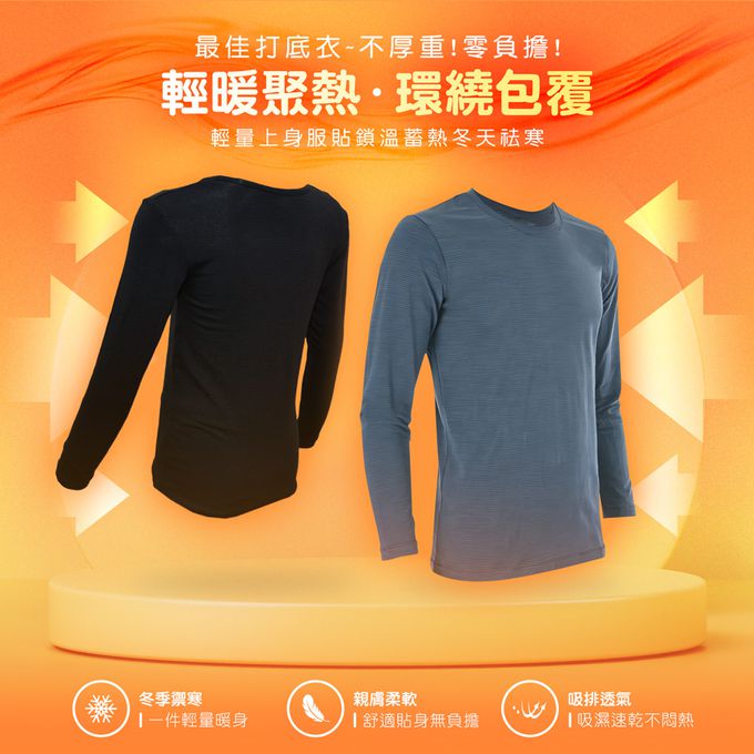 男款膠原蛋白蓄熱保暖衣-圓領-霧藍