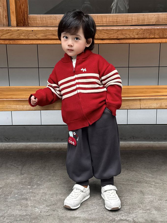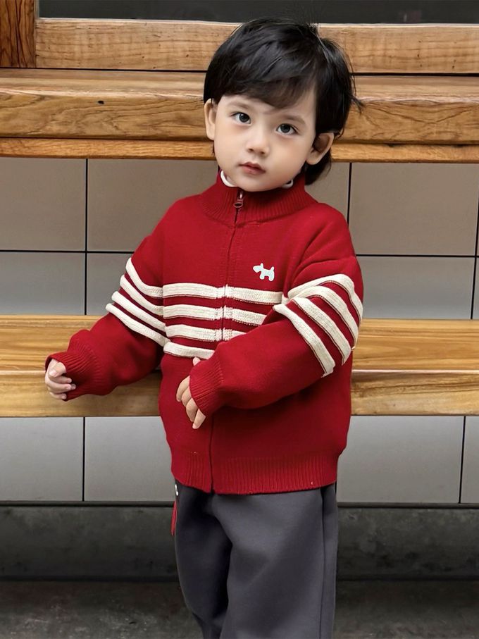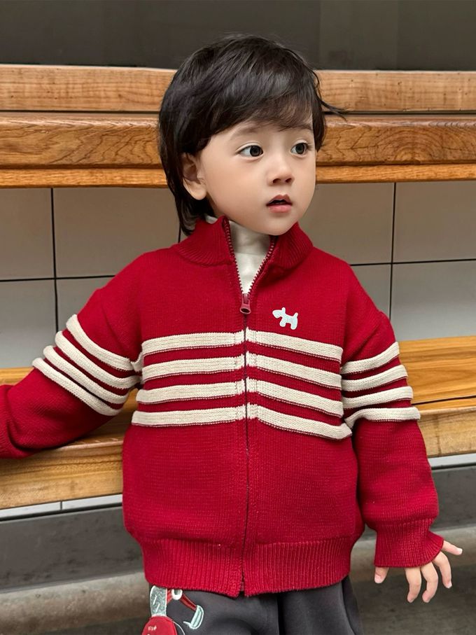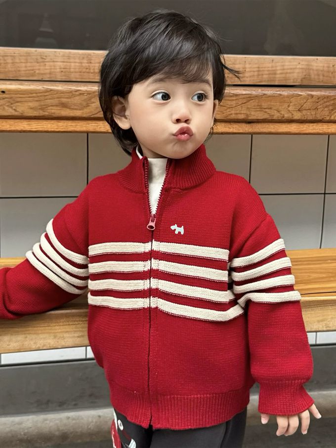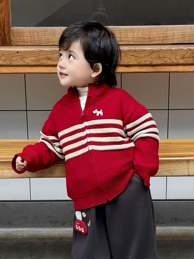 半高領純棉拉鍊毛衣外套-紅色