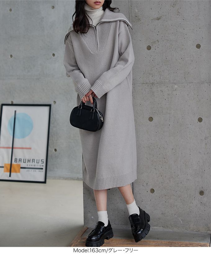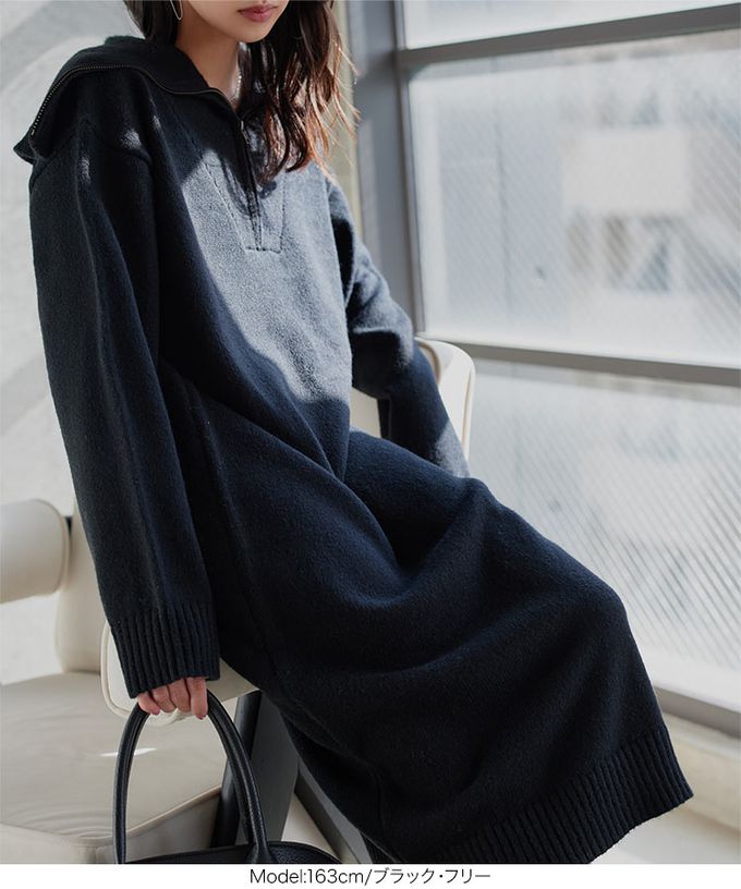 • 品名:半拉鍊修身大翻領柔美針織長袖洋裝