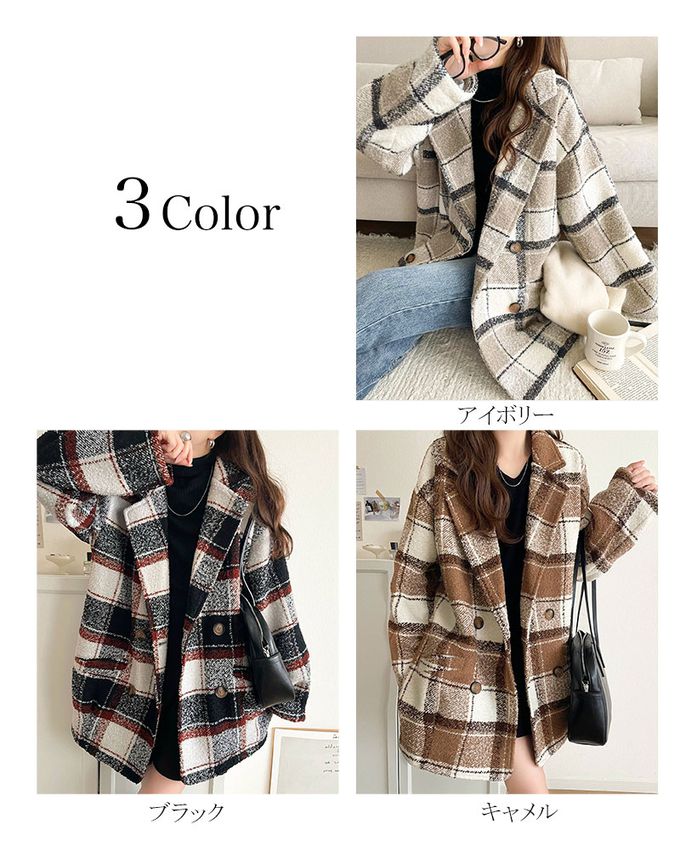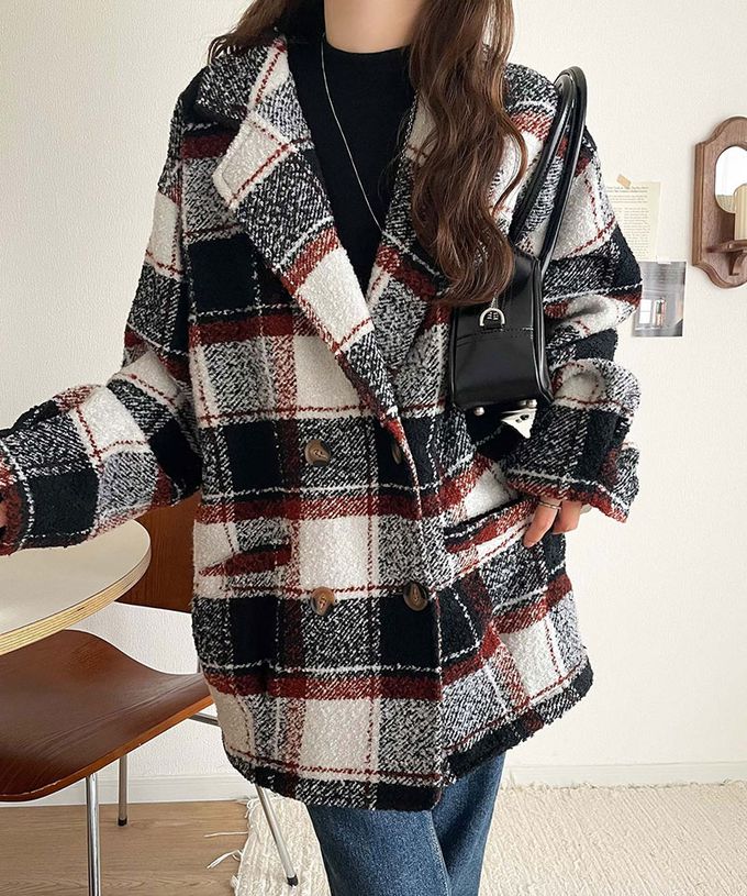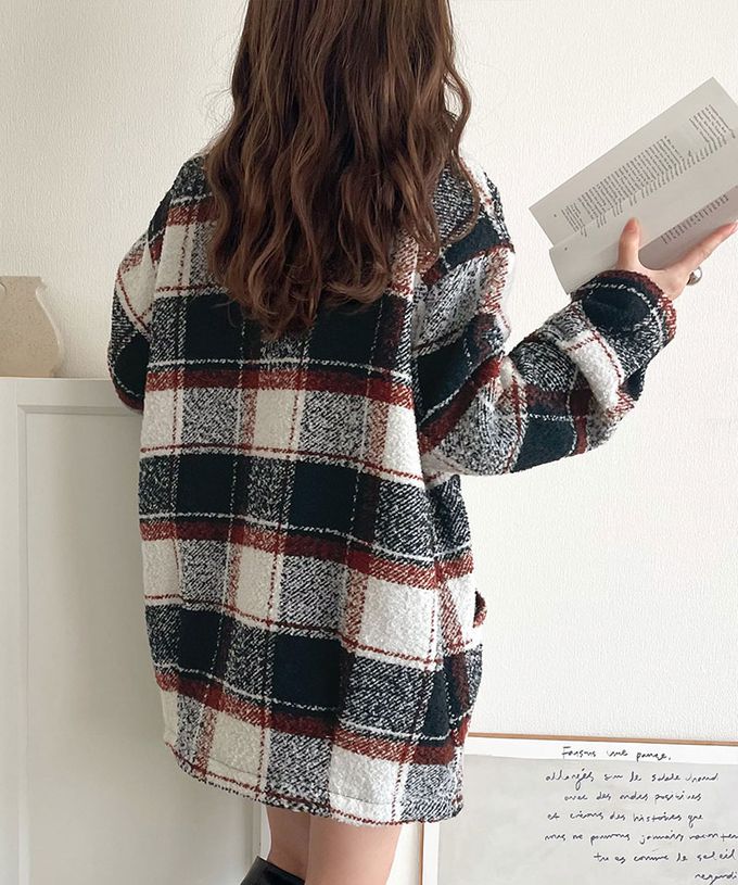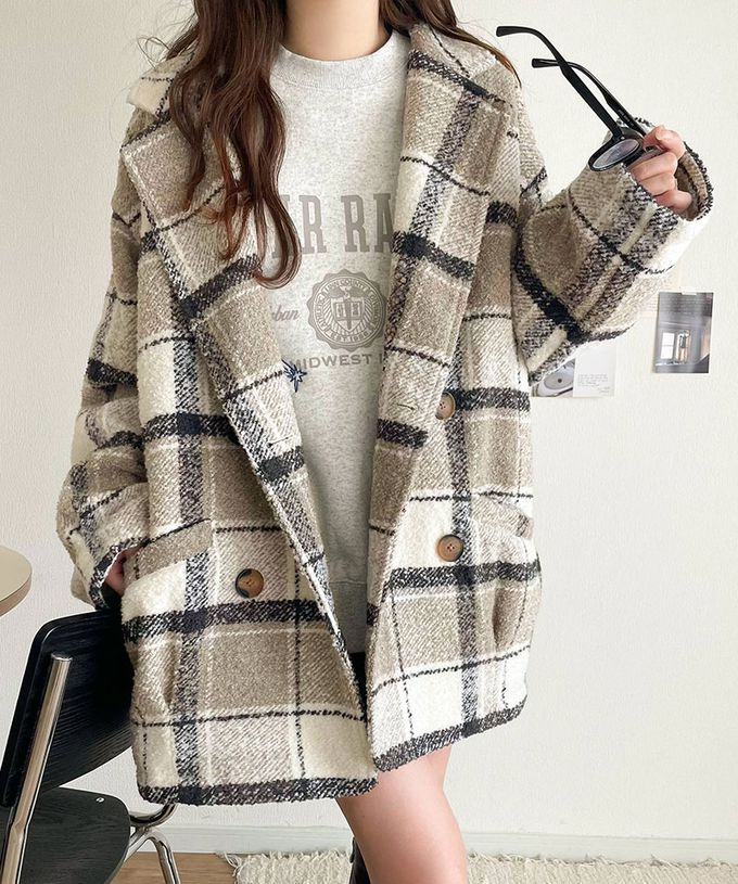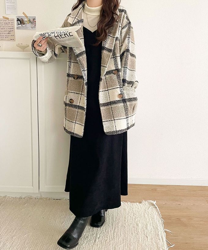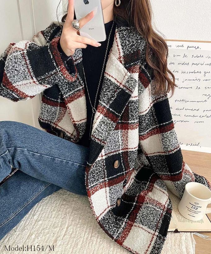 • 品名:亮麗格紋翻領廓形中長版大衣