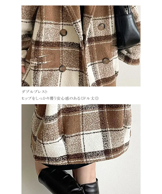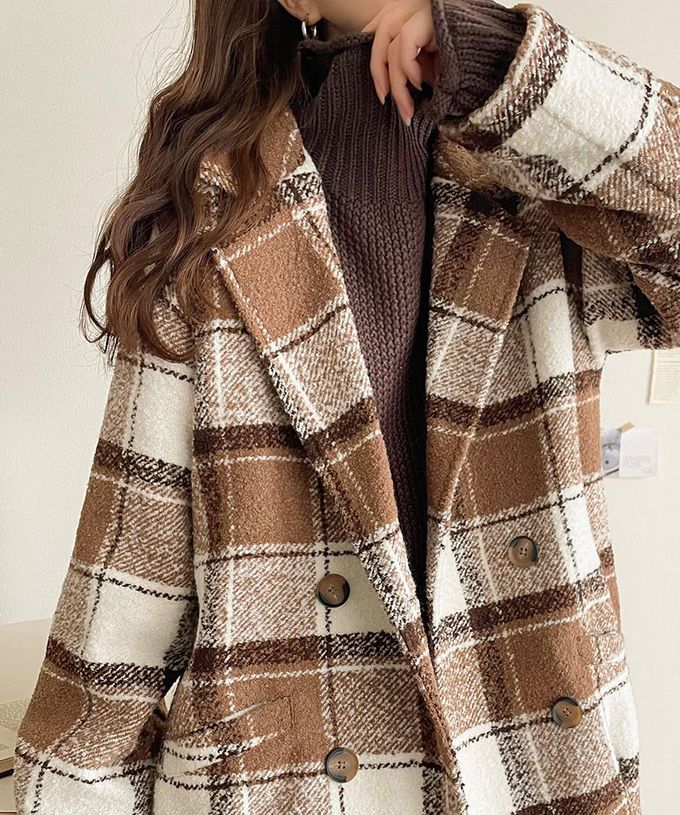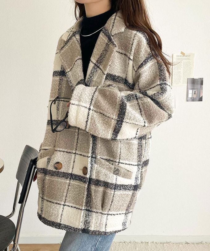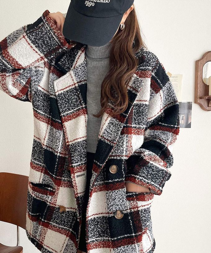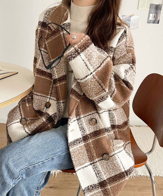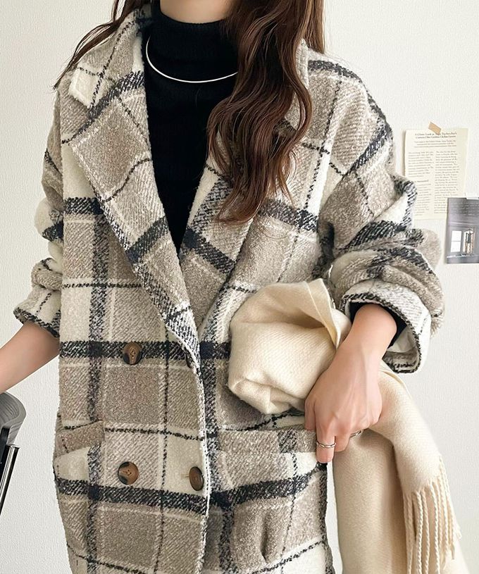 • 品名:亮麗格紋翻領廓形中長版大衣