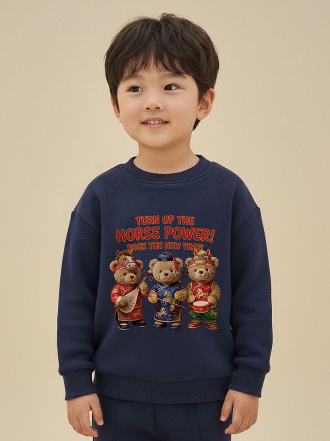 內刷絨長袖上衣+長褲套裝-馬力全開-藏青