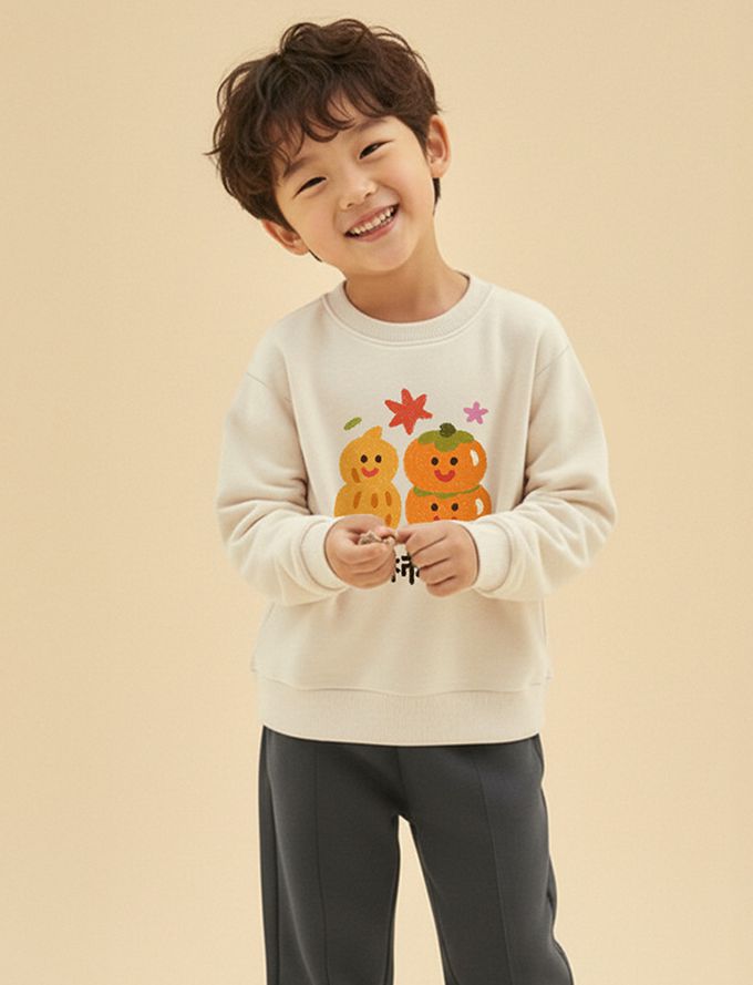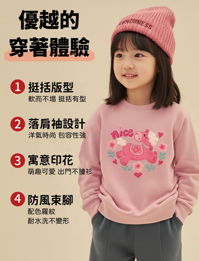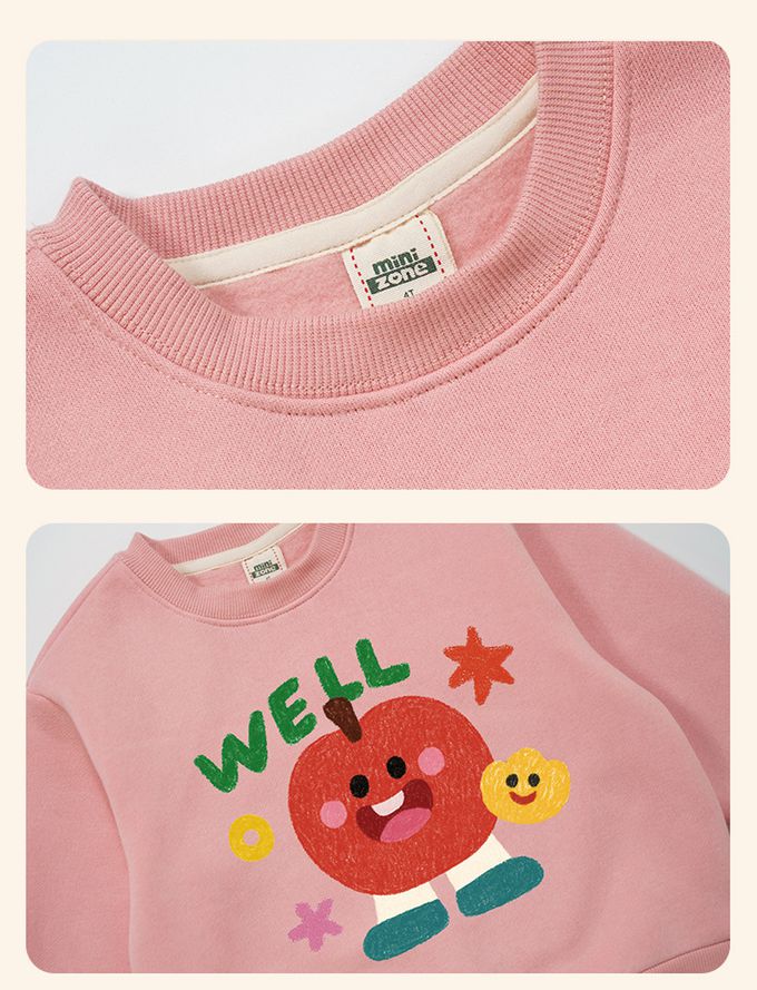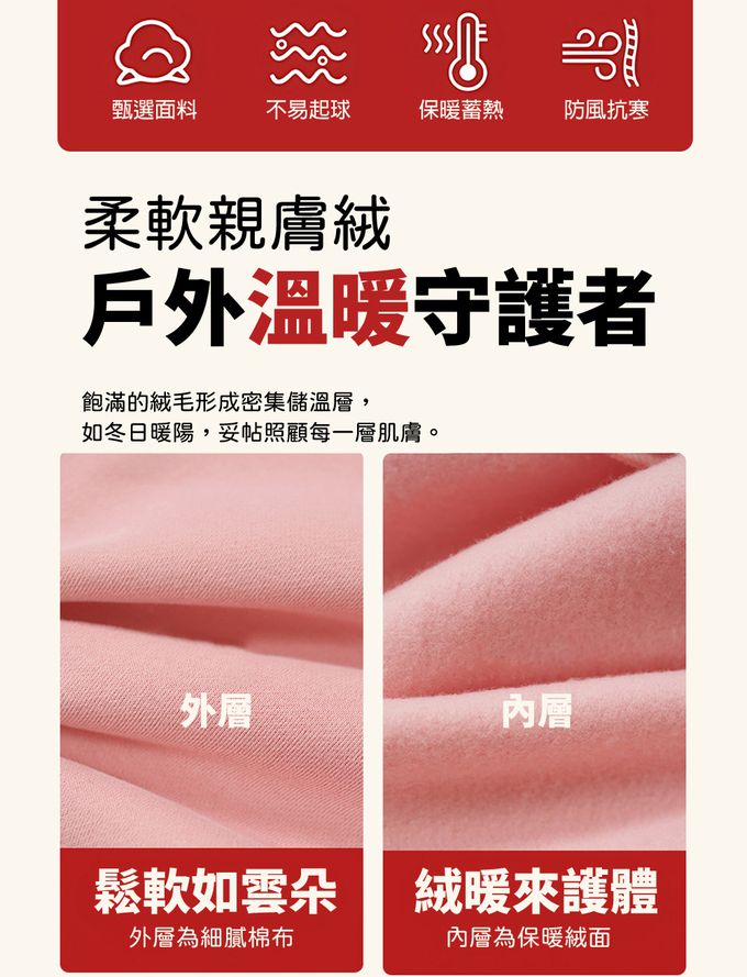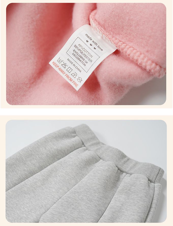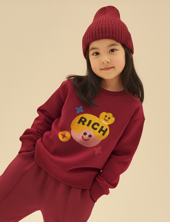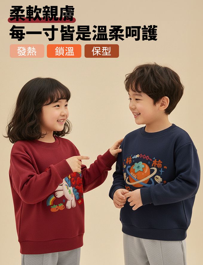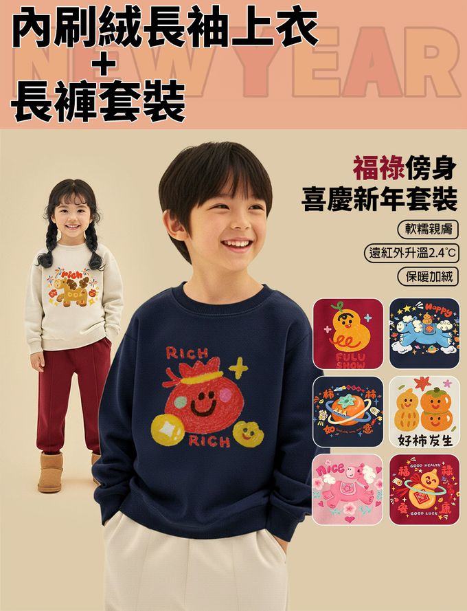內刷絨長袖上衣+長褲套裝-富足小孩-紅色