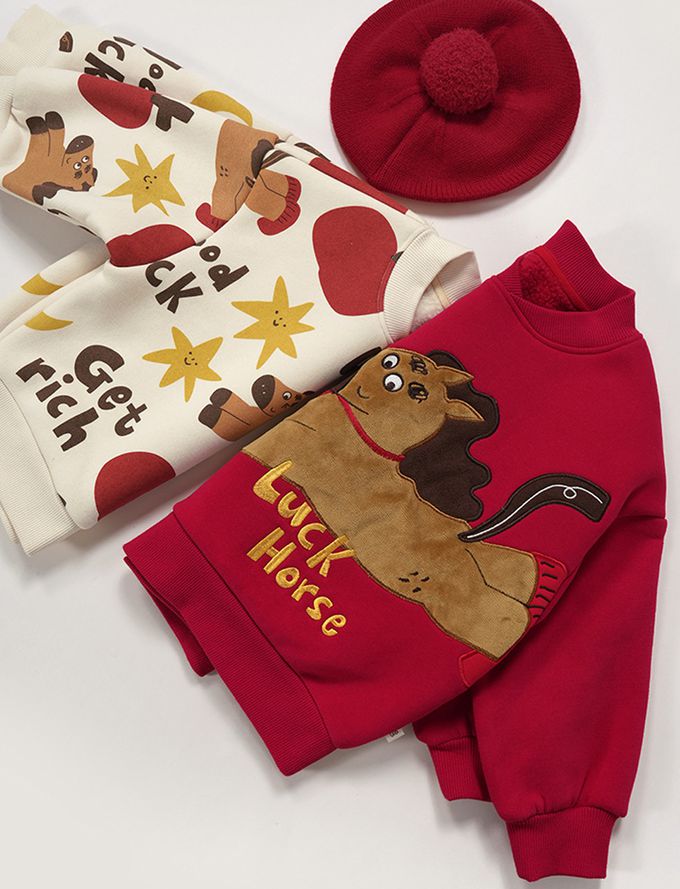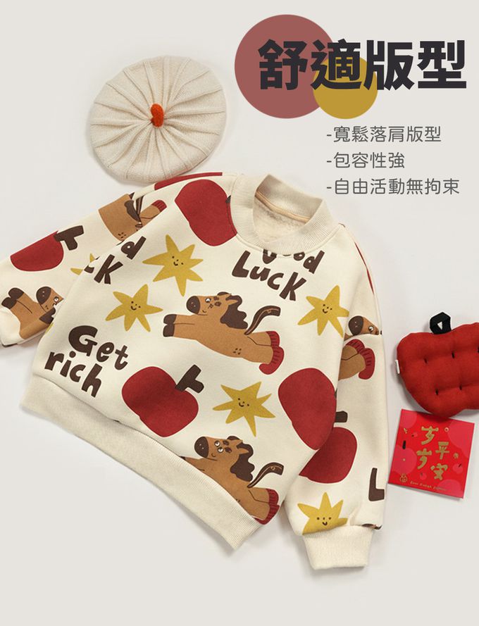 內刷絨造型領長袖上衣-幸運騎星-米杏