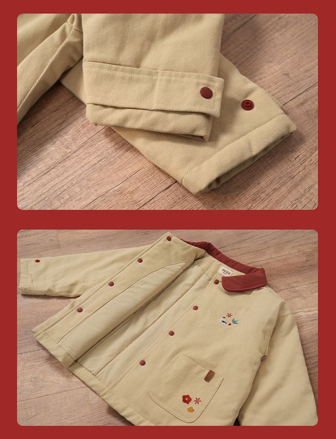 純棉巴恩風翻領鋪棉外套-吉祥深灰