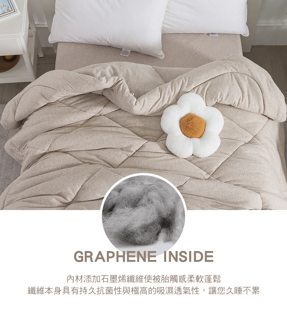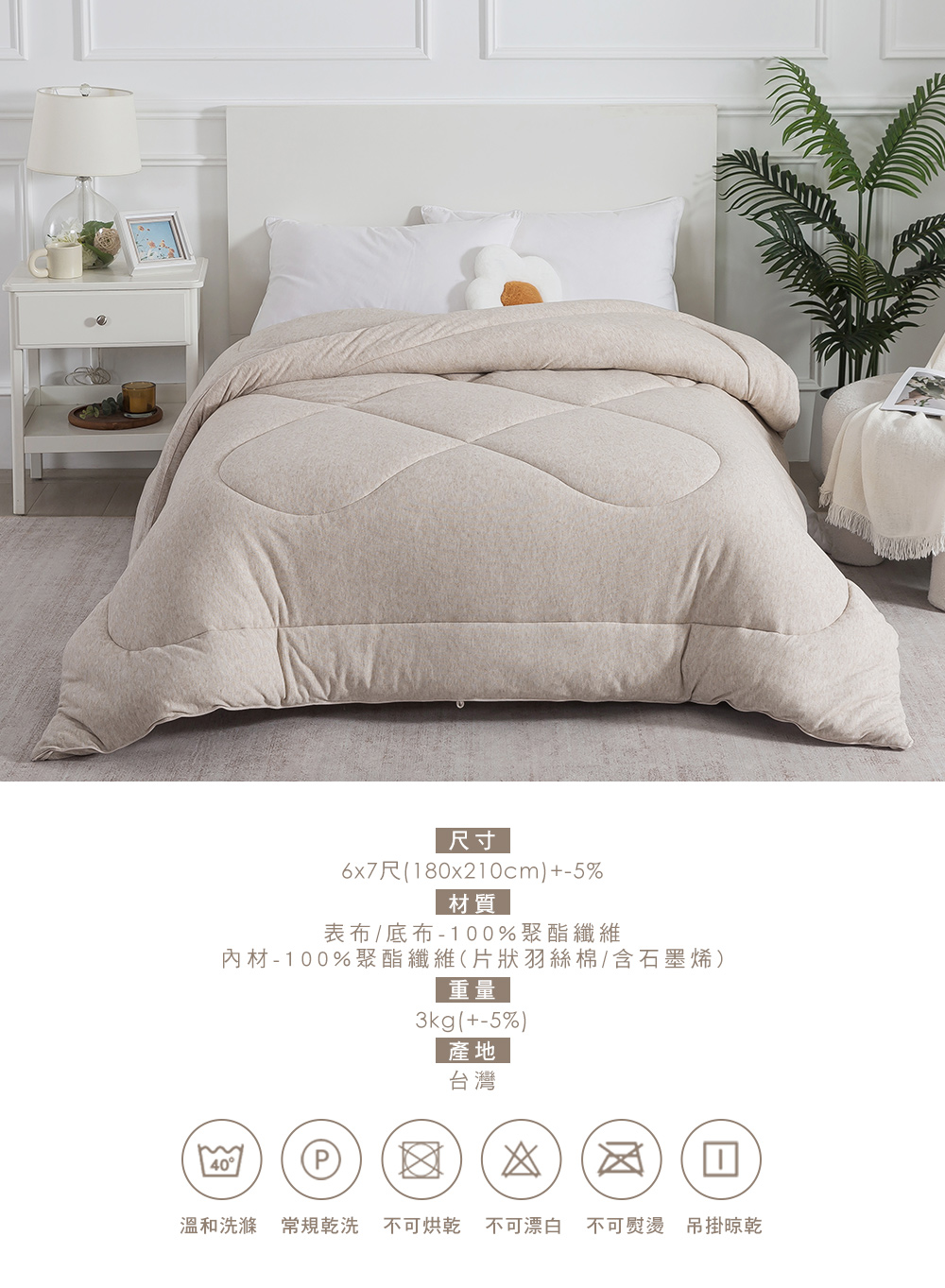 ◎材質:表布/底布-100%聚酯纖維/內材-100%聚酯纖維(片狀羽絲棉/含石墨烯)