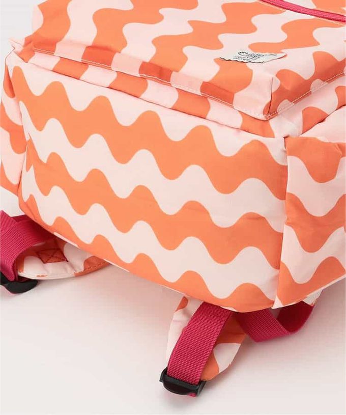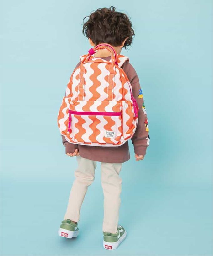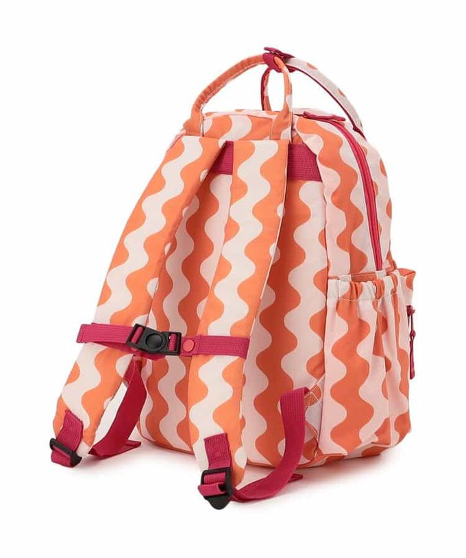 日本 BREEZE - [可機洗]輕便大開口出遊背包-曲線-橘紅系