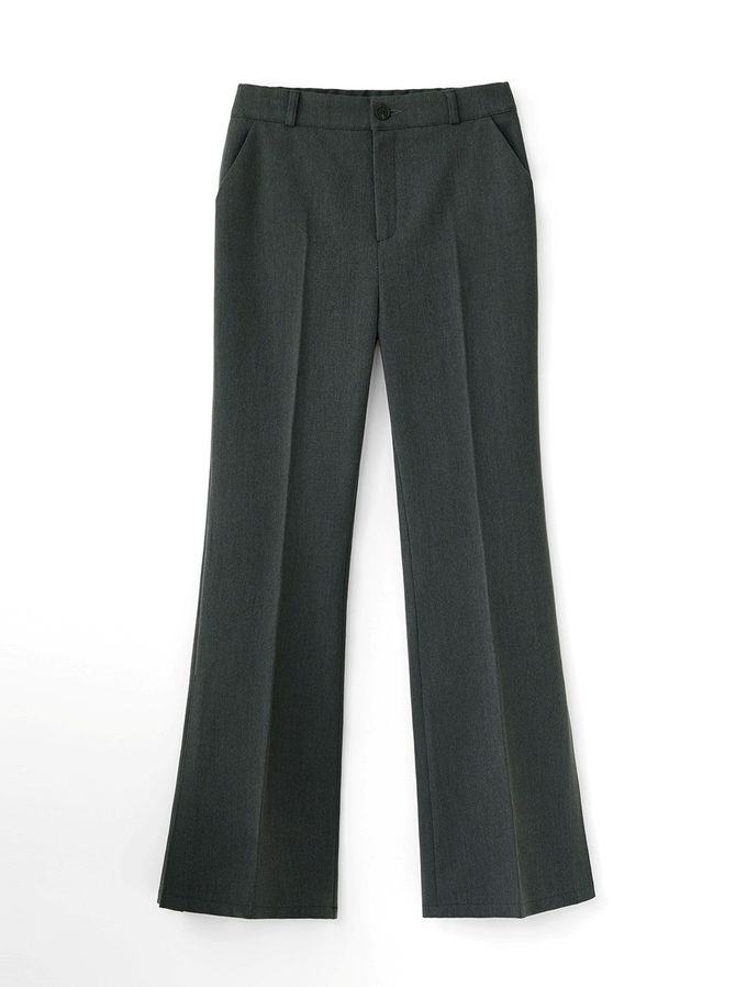韓國女裝連線 - Domingoblue 後鬆緊腰磨毛感俐落感修身抓褶喇叭褲-深灰