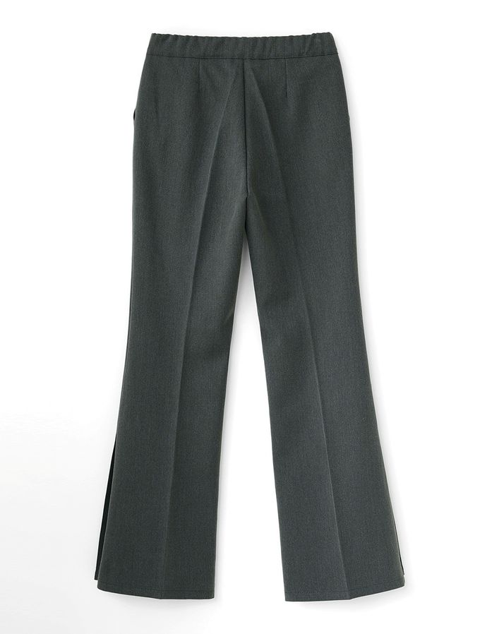 • 品名:Domingoblue 後鬆緊腰磨毛感俐落感修身抓褶喇叭褲