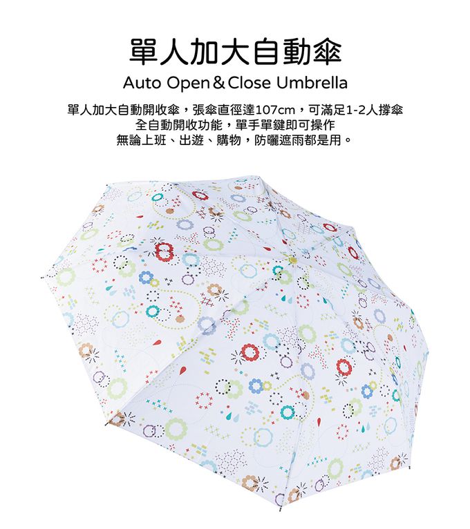 抗UV加大防回彈自動傘-繽紛幾何-400g