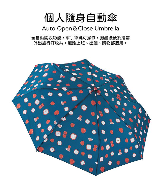 抗UV個人防回彈自動傘-蘋果刺蝟(藍)-315g
