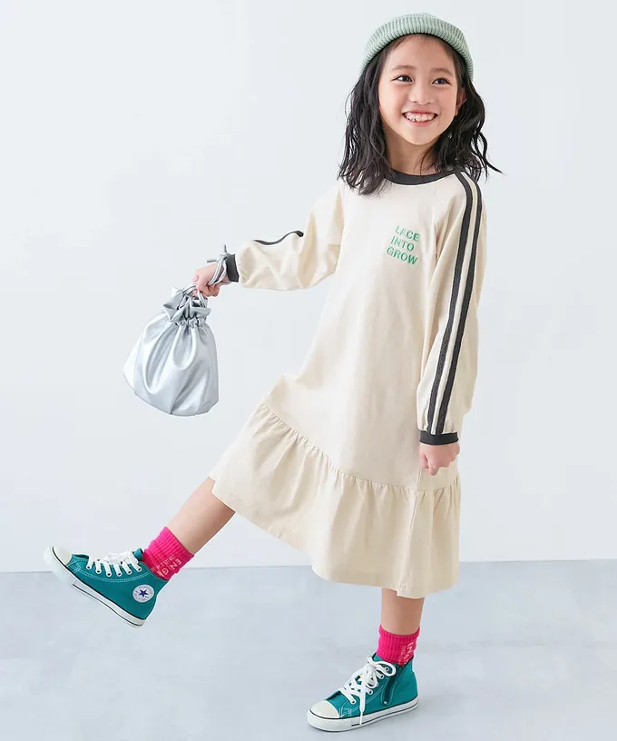 日本 devirock - 純棉運動風荷葉下擺長袖洋裝-象牙白