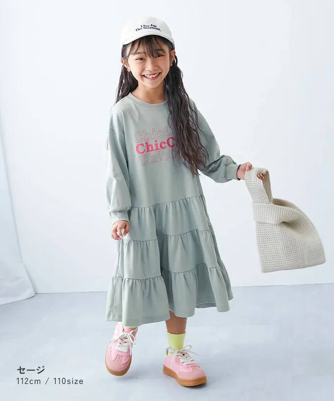 • 品名:簡約英文logo分層飄逸長袖洋裝