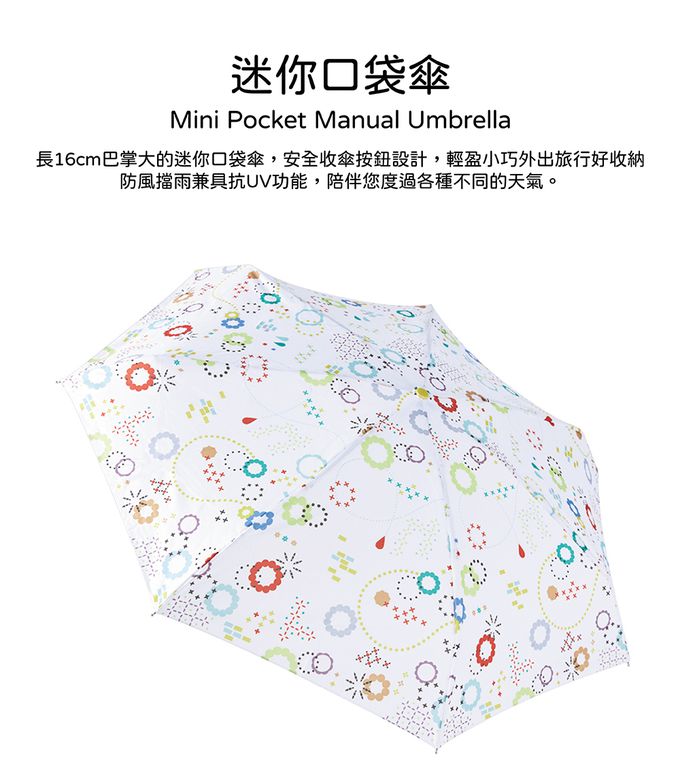 抗UV手開迷你口袋傘-繽紛幾何-230g