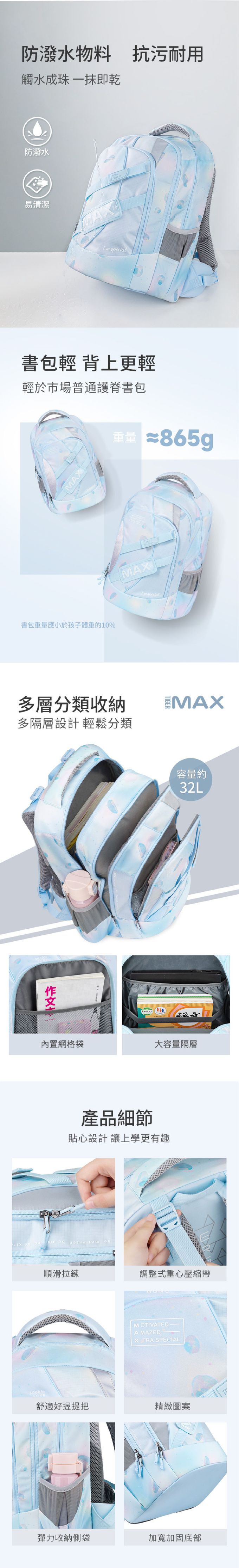 • 品名:MAX2.0超輕量護脊書包Pro 2S-藍天【團購優惠】