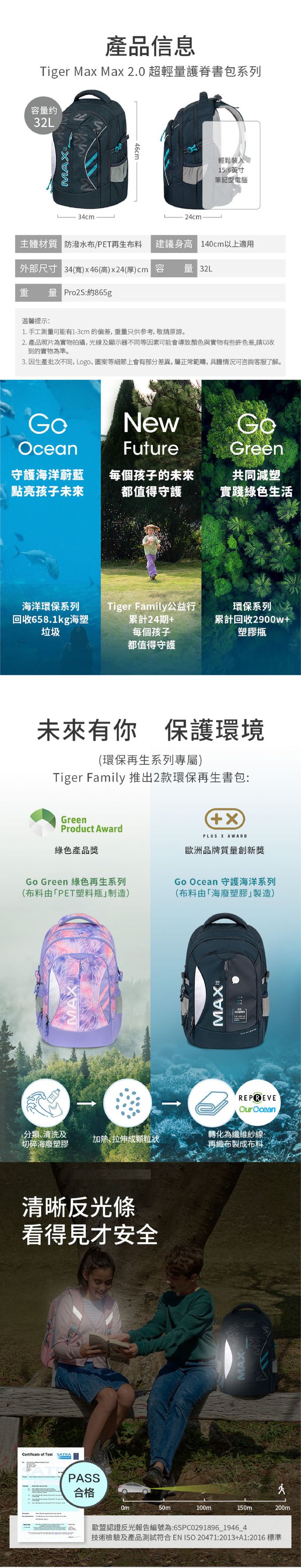 Tiger Family - MAX2.0超輕量護脊書包Pro 2S-藍天【團購優惠】-買就送MAX捲式後背包(款式隨機,贈完以其他商品替代,恕不另通知)