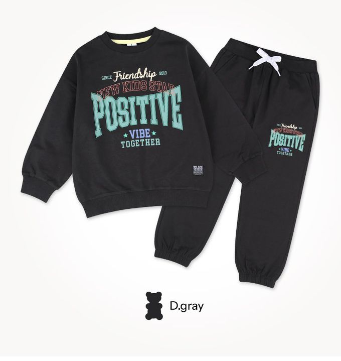 韓國 Jelispoon - 美式風格文字圖案長袖套裝-黑灰
