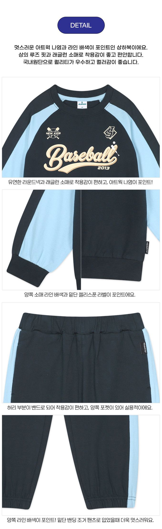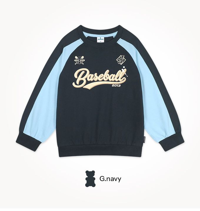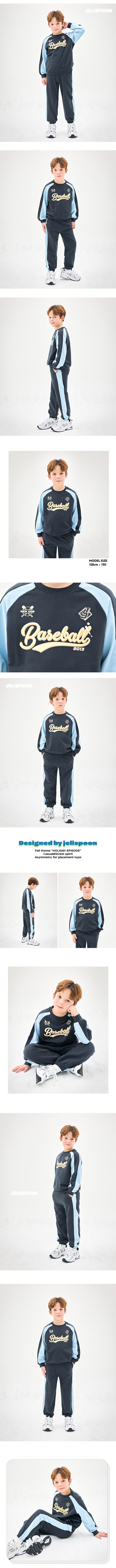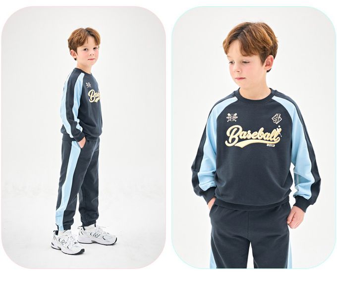 韓國 Jelispoon - 棒球文字印撞色長袖套圖-黑灰X天藍