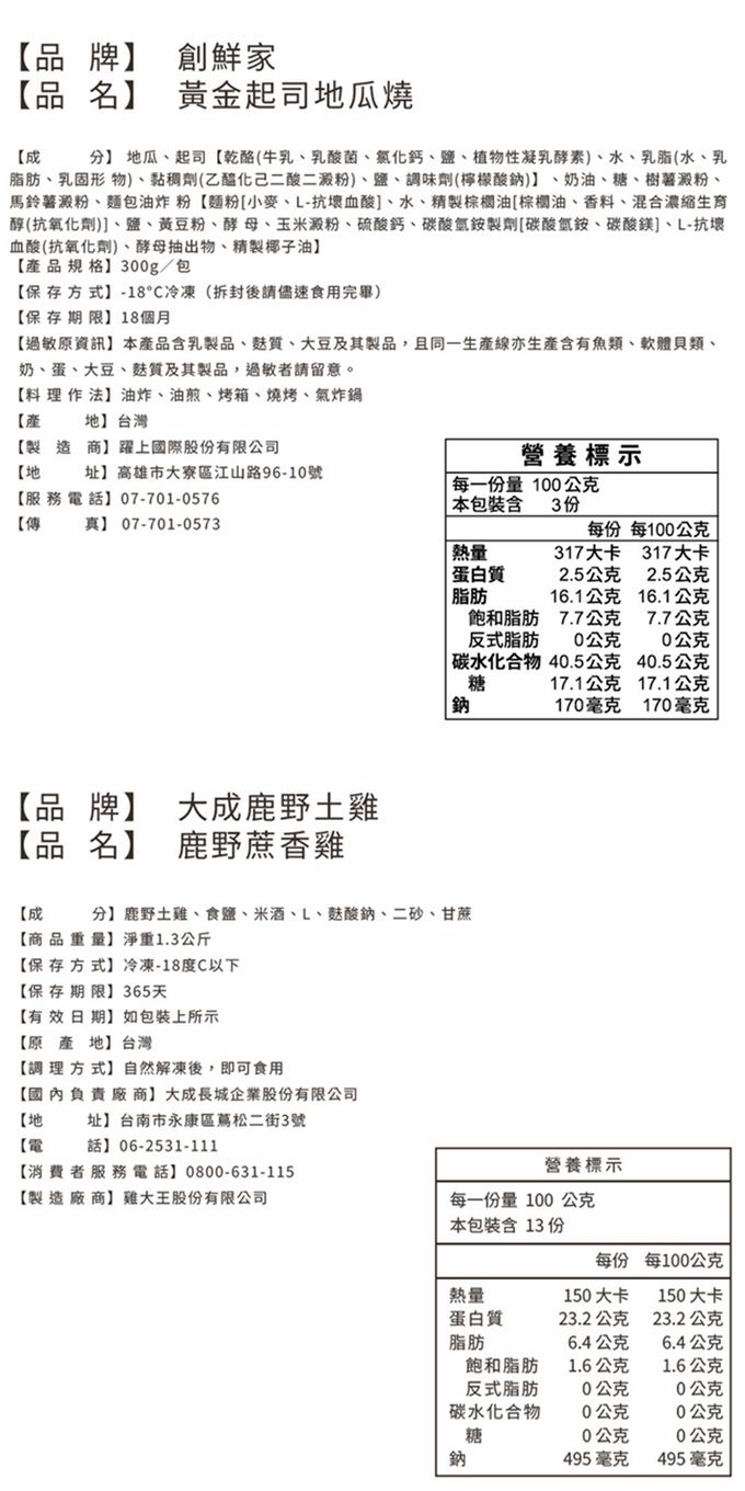 大成鹿野蔗香雞、爆料月亮蝦餅