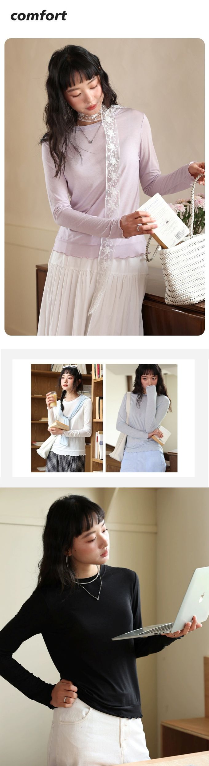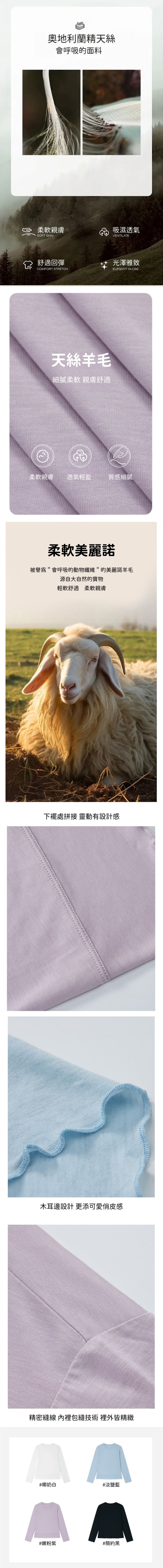 • 品名:細緻綿柔3.2%羊毛天絲木耳邊長袖上衣