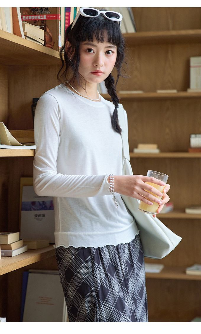 • 品名:細緻綿柔3.2%羊毛天絲木耳邊長袖上衣