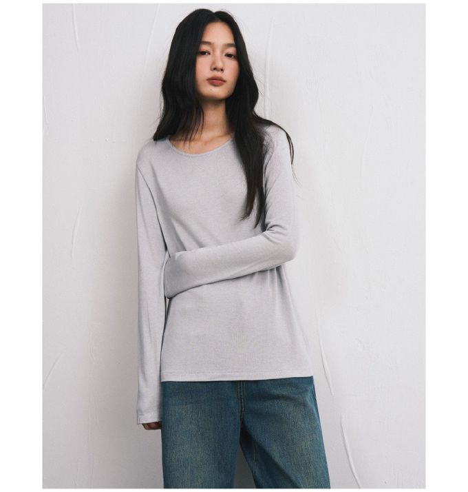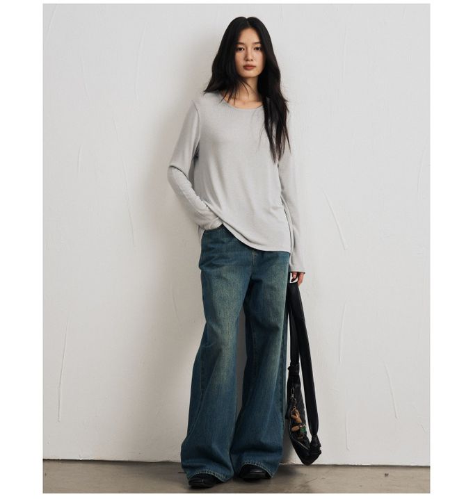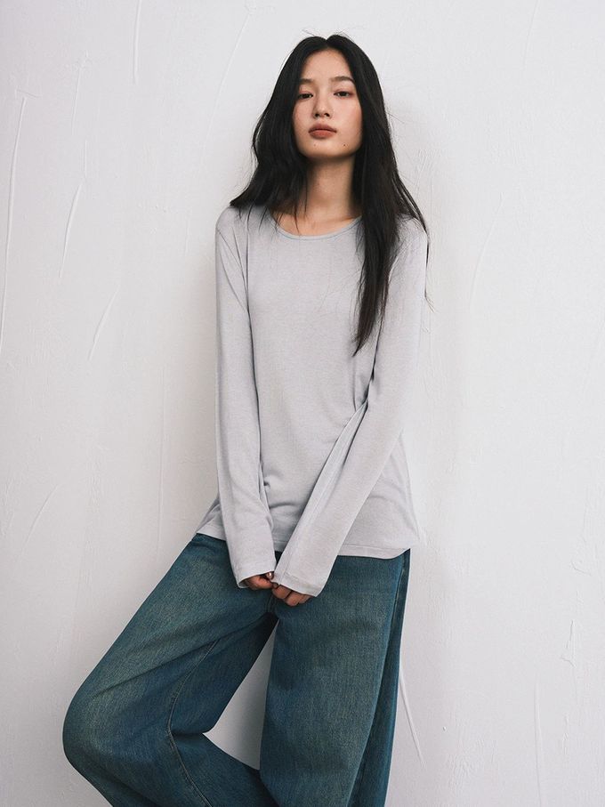 KPUWARM - 輕絨暖感3%羊毛天絲莫代爾寬鬆長袖上衣-霧絨藍