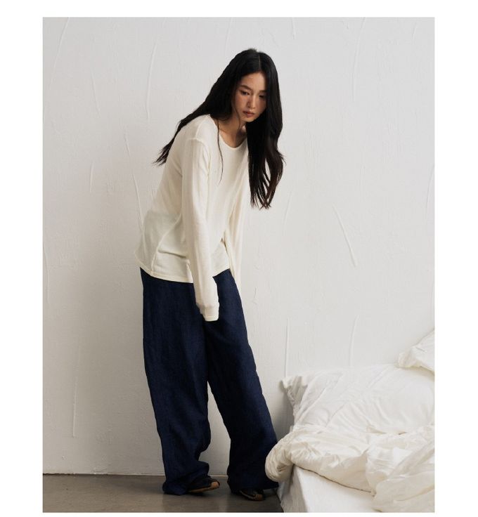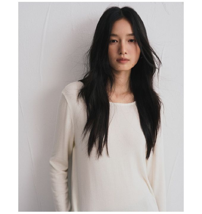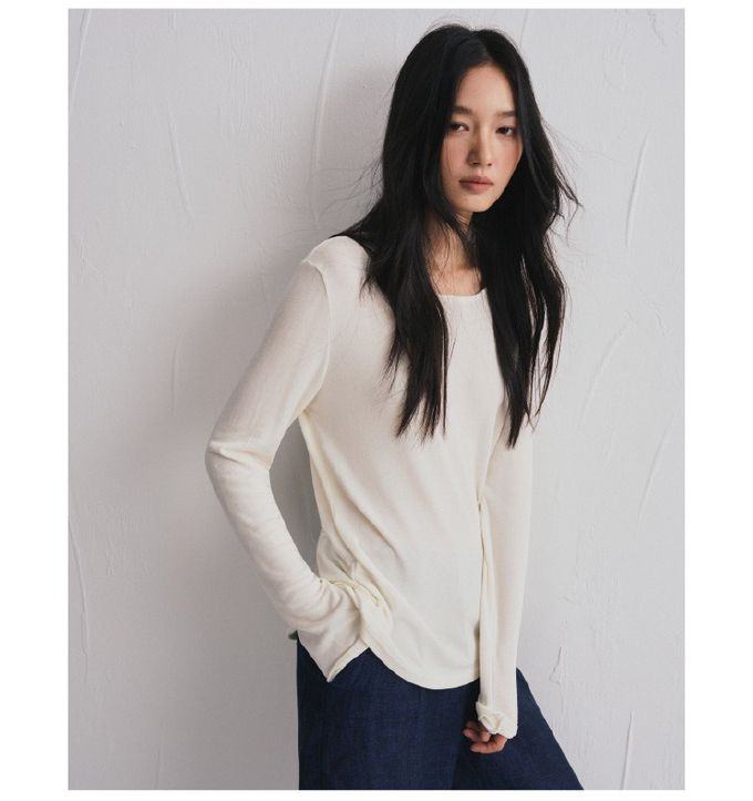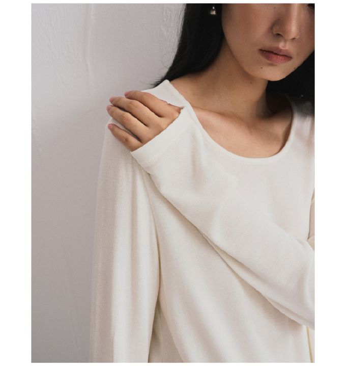 KPUWARM - 輕絨暖感3%羊毛天絲莫代爾寬鬆長袖上衣-奶絨白