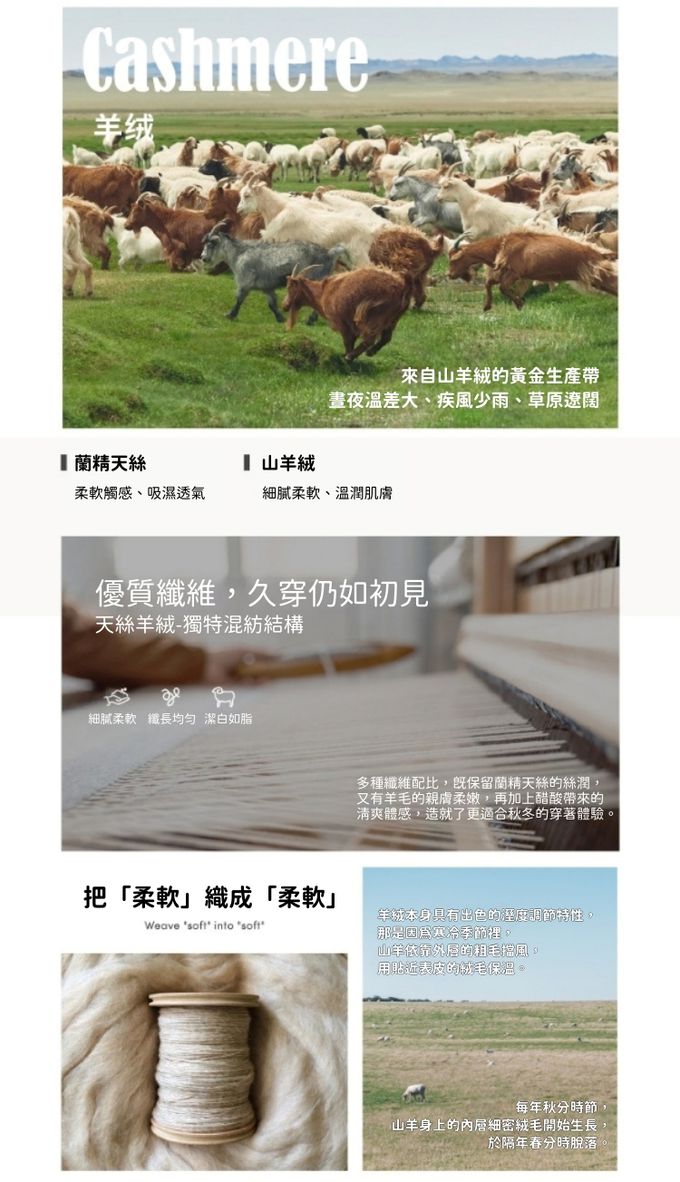 • 添加羊絨纖維,面料鬆軟、觸感極佳