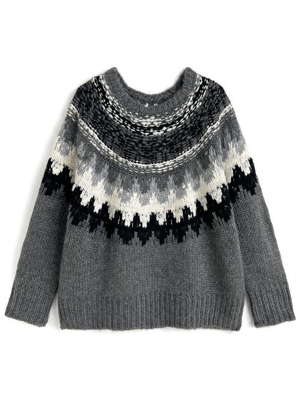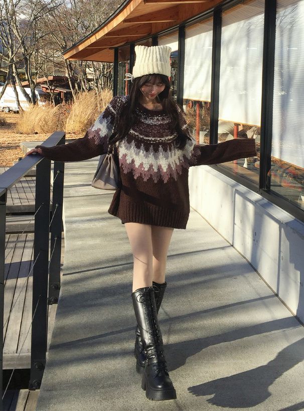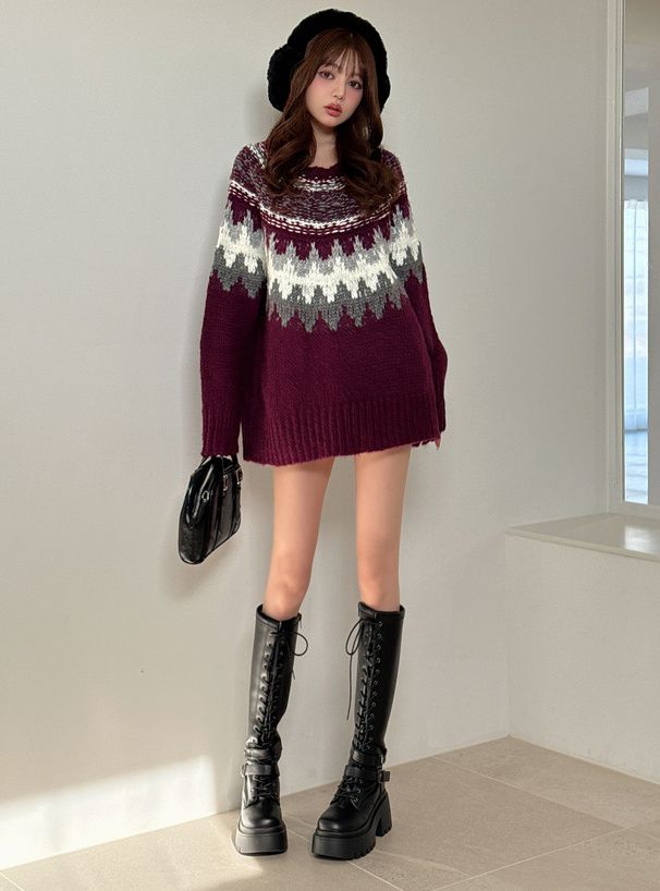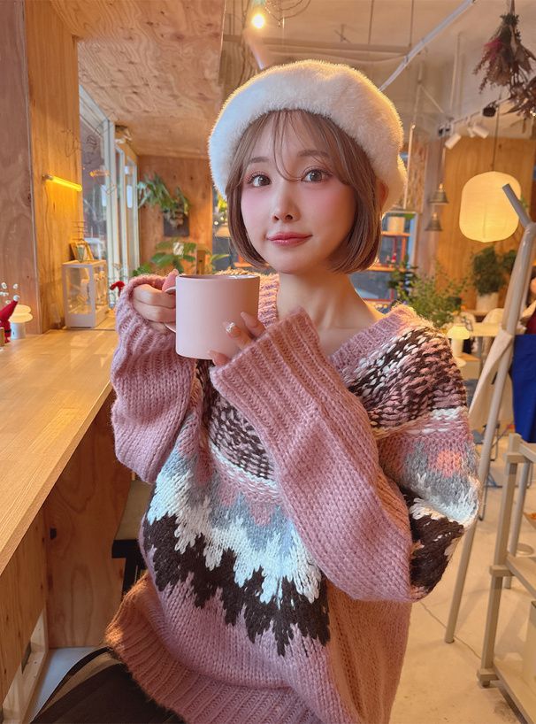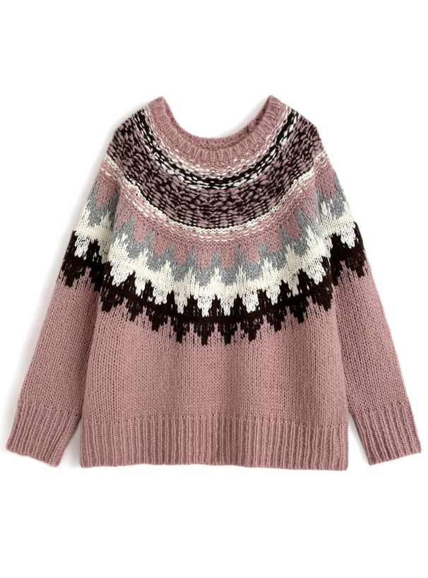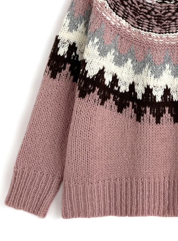日本 GRL - 北歐風復古印花粗針織上衣-粉紅 (F)