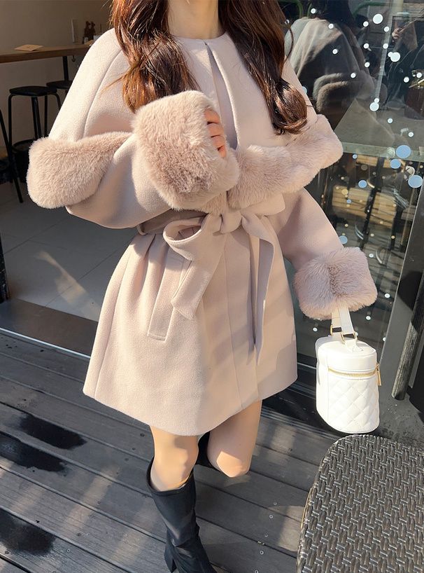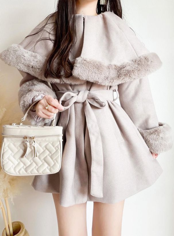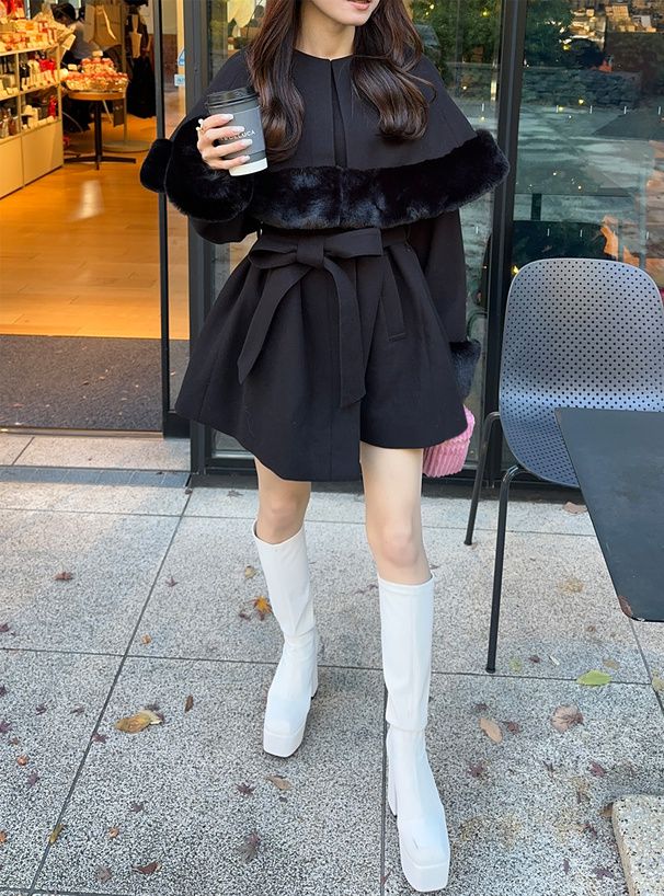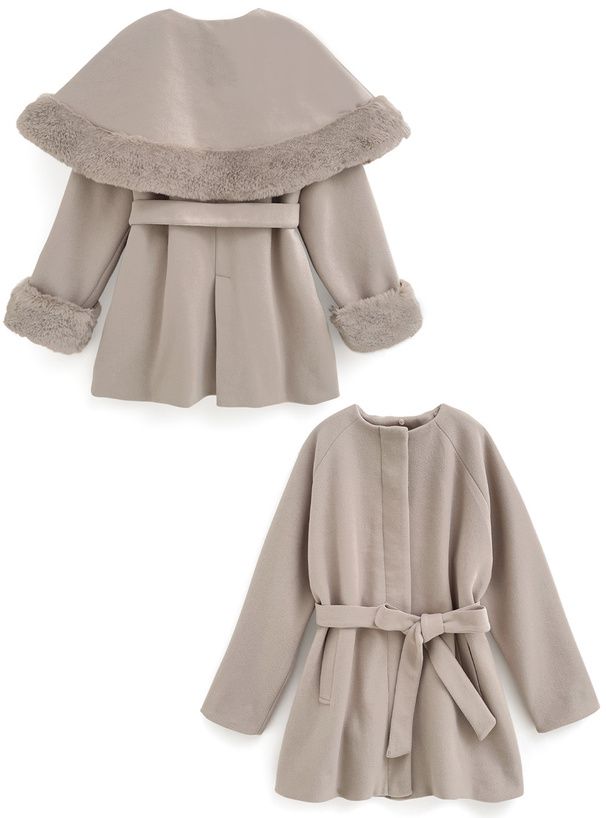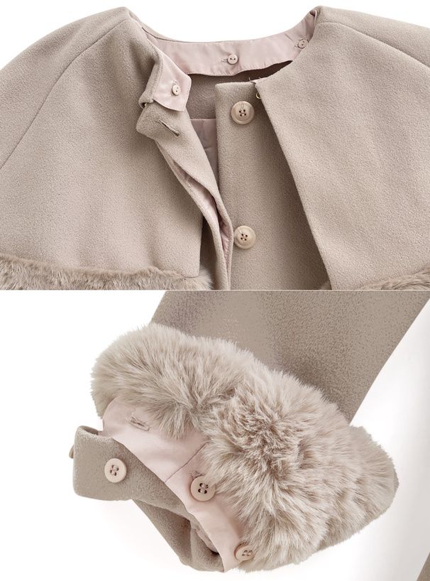 • 品名:氣質小奢華短版大衣外套(附毛絨斗篷)