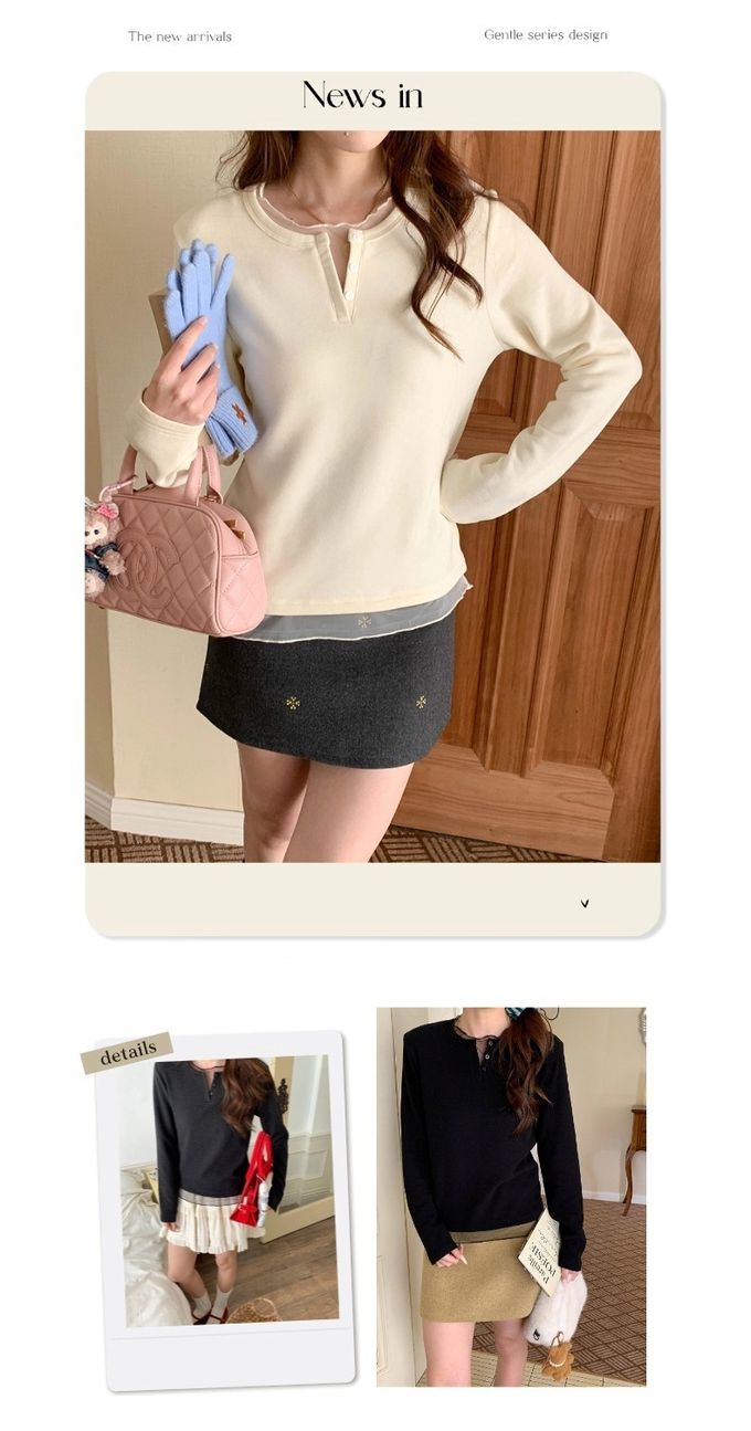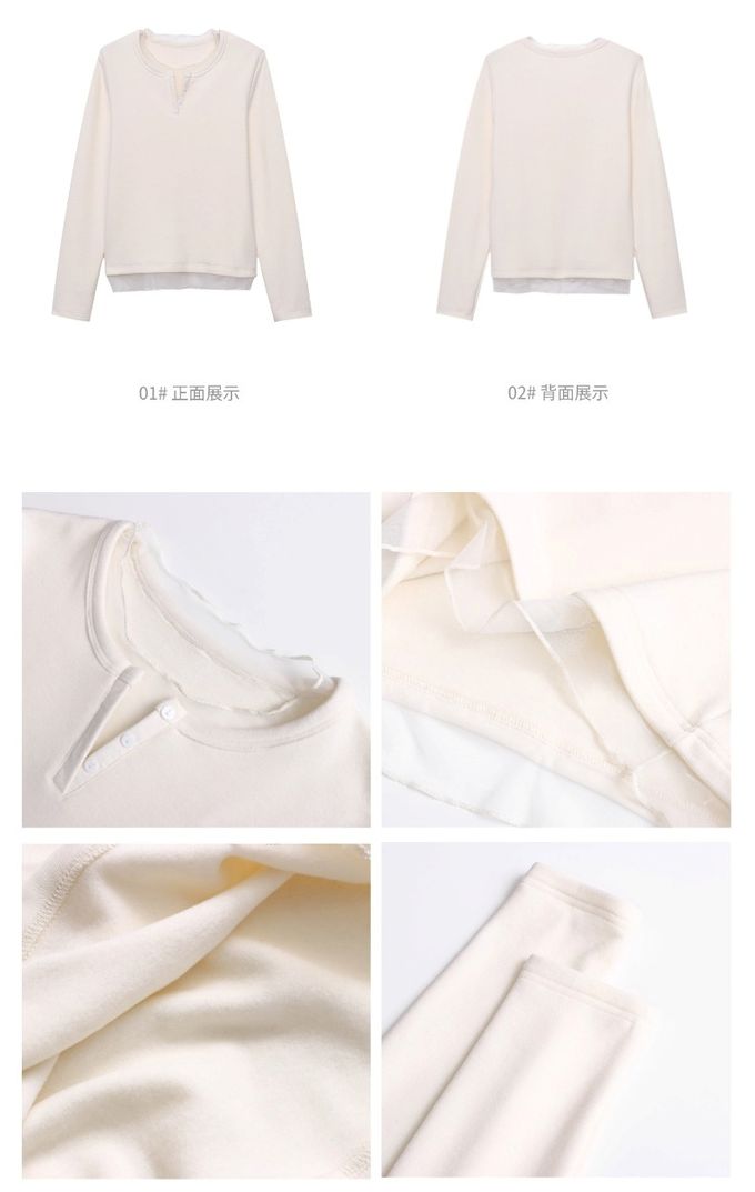 • 品名:溫柔系V領鈕扣網紗拼接長袖上衣