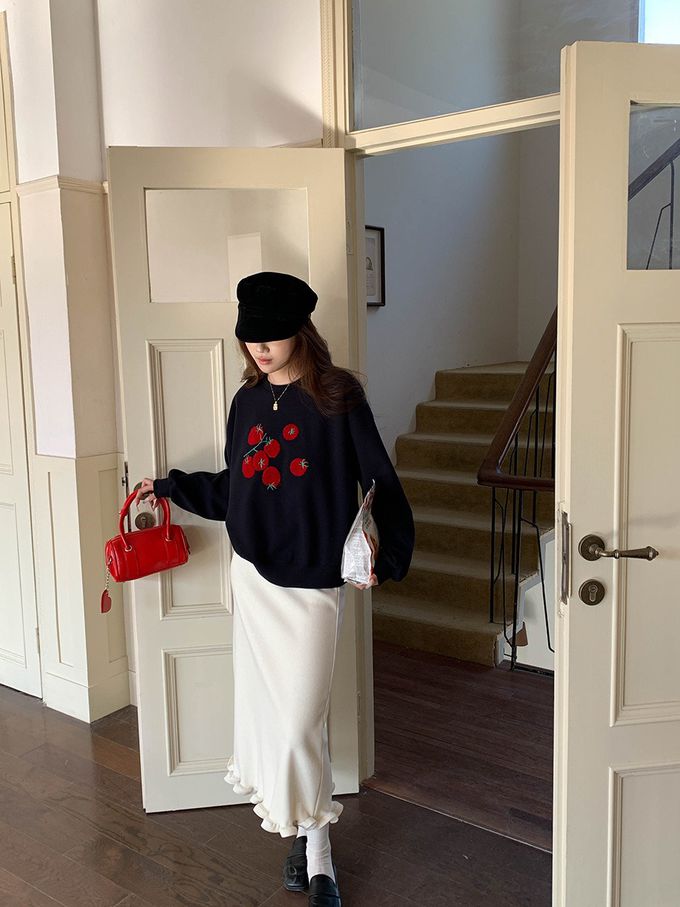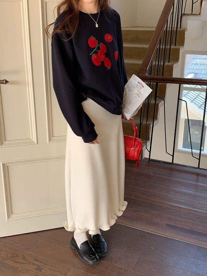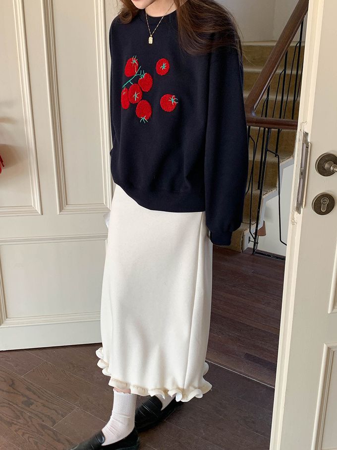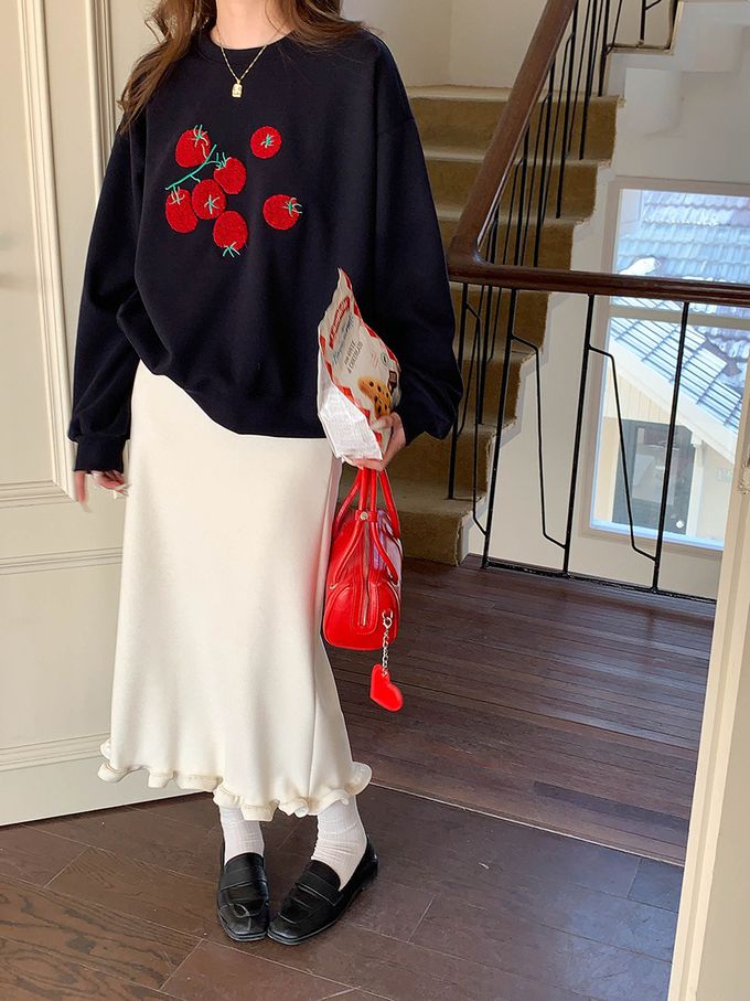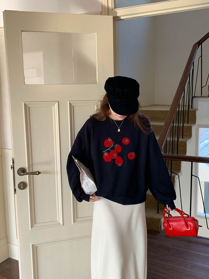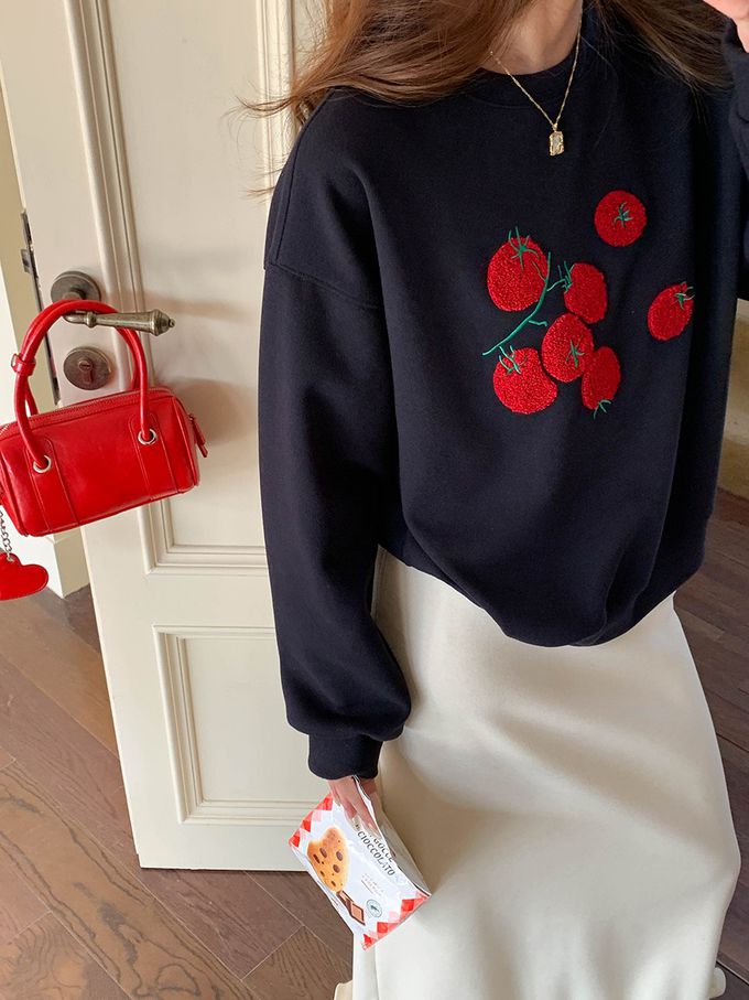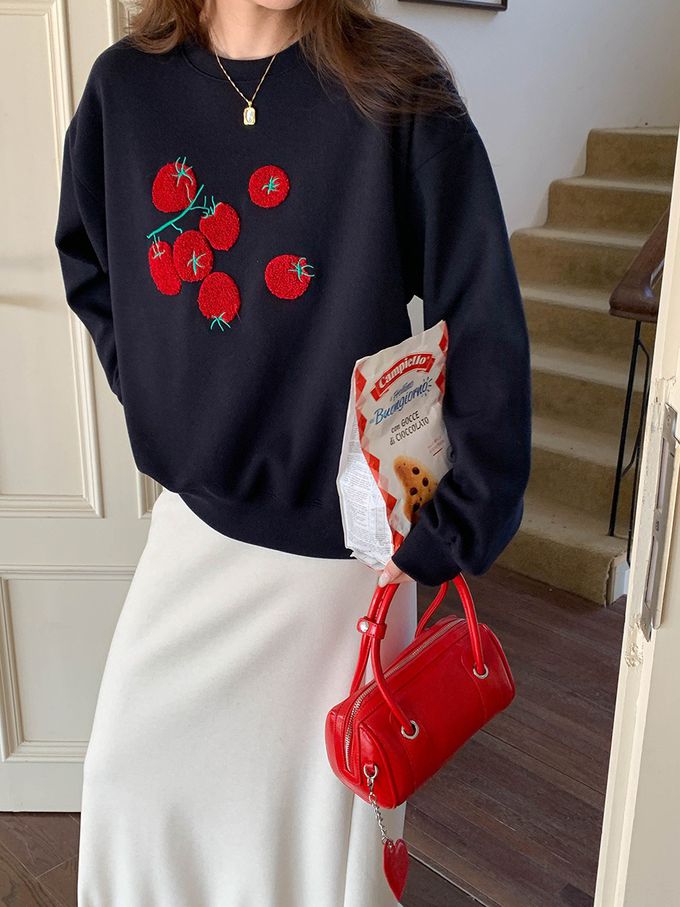 • 品名:毛巾繡小蕃茄點綴長袖大學T
