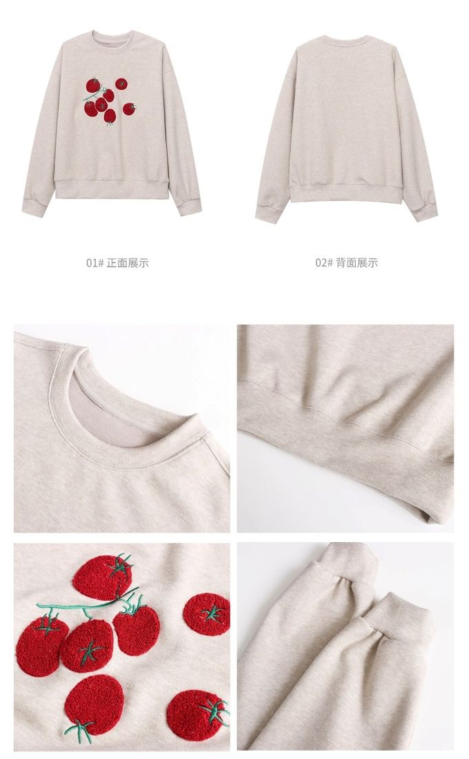 • 品名:毛巾繡小蕃茄點綴長袖大學T