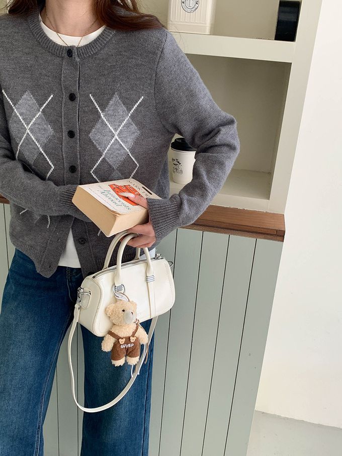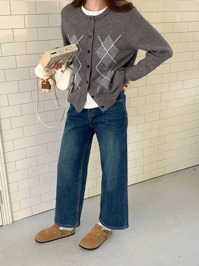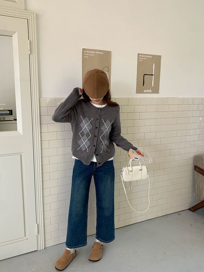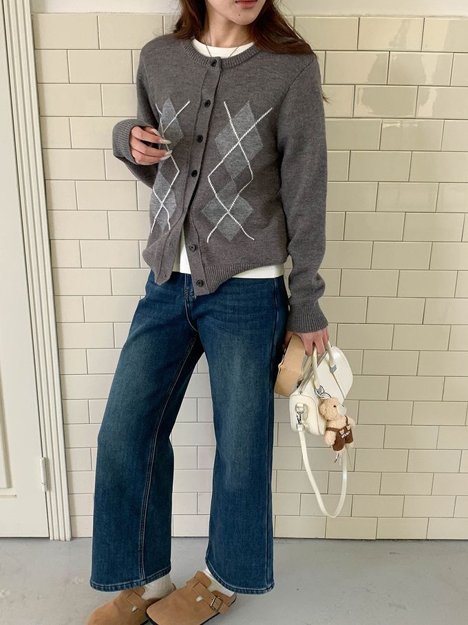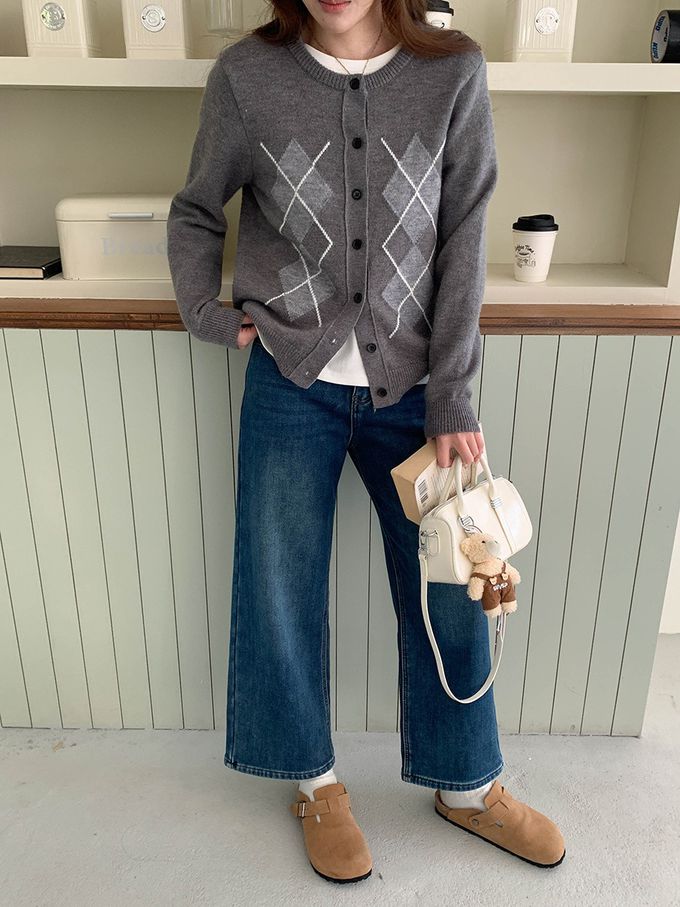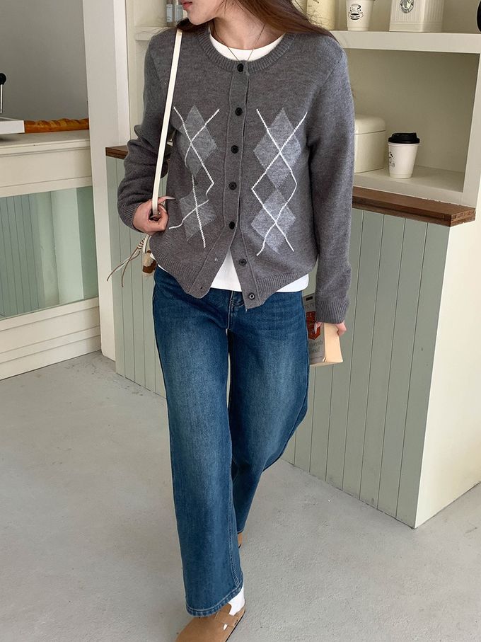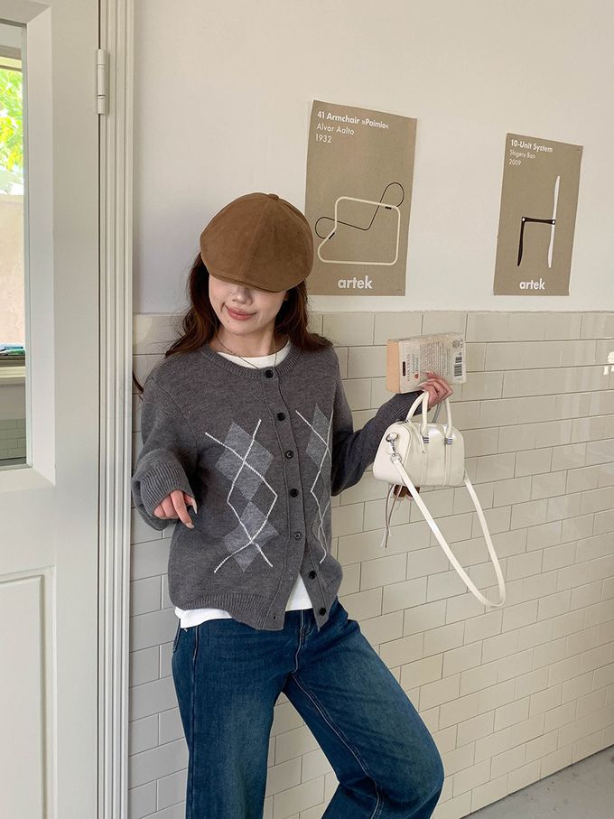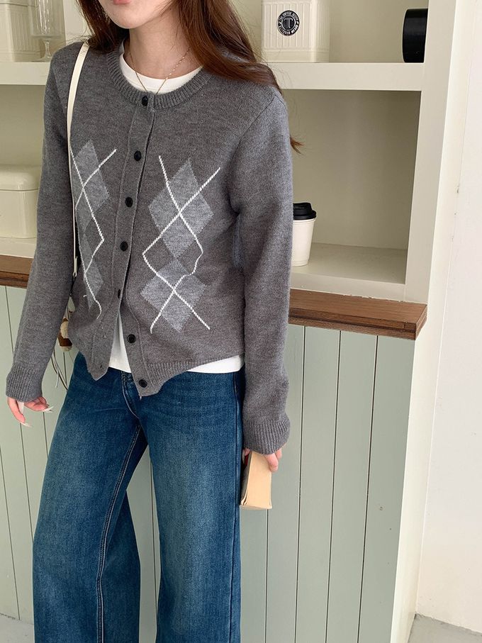 3th Morning - 知性學院菱格單排扣針織外套-炭灰 (F)