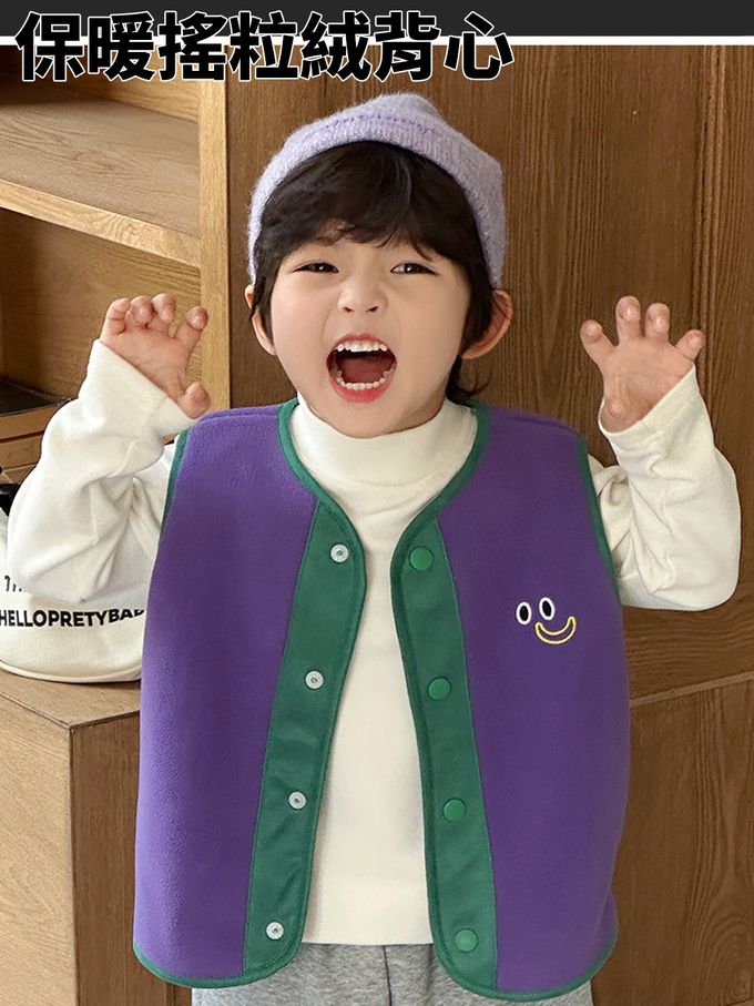 搖粒絨保暖兒童背心-萌趣小表情-紫色