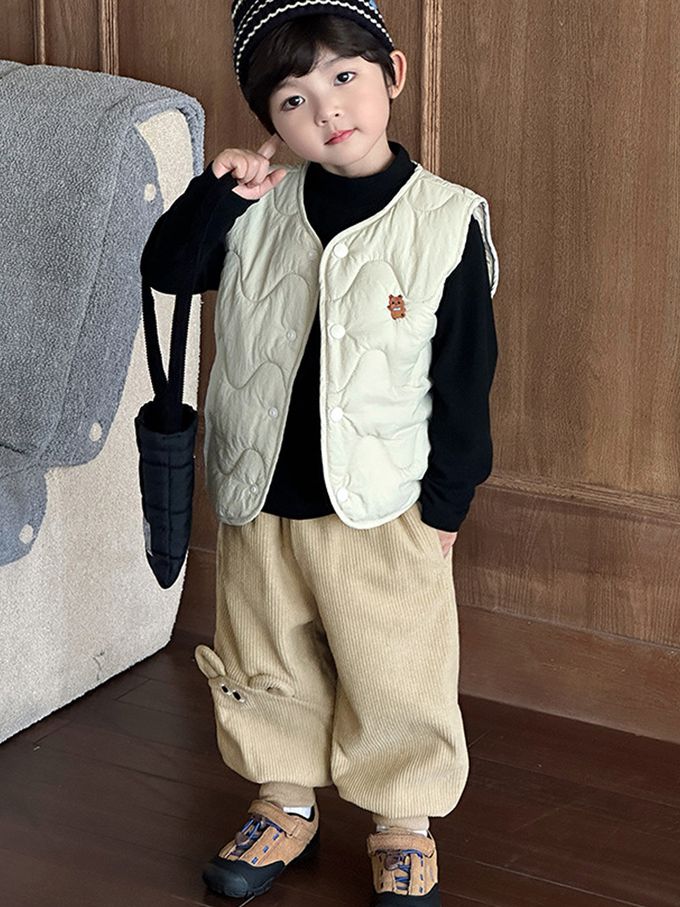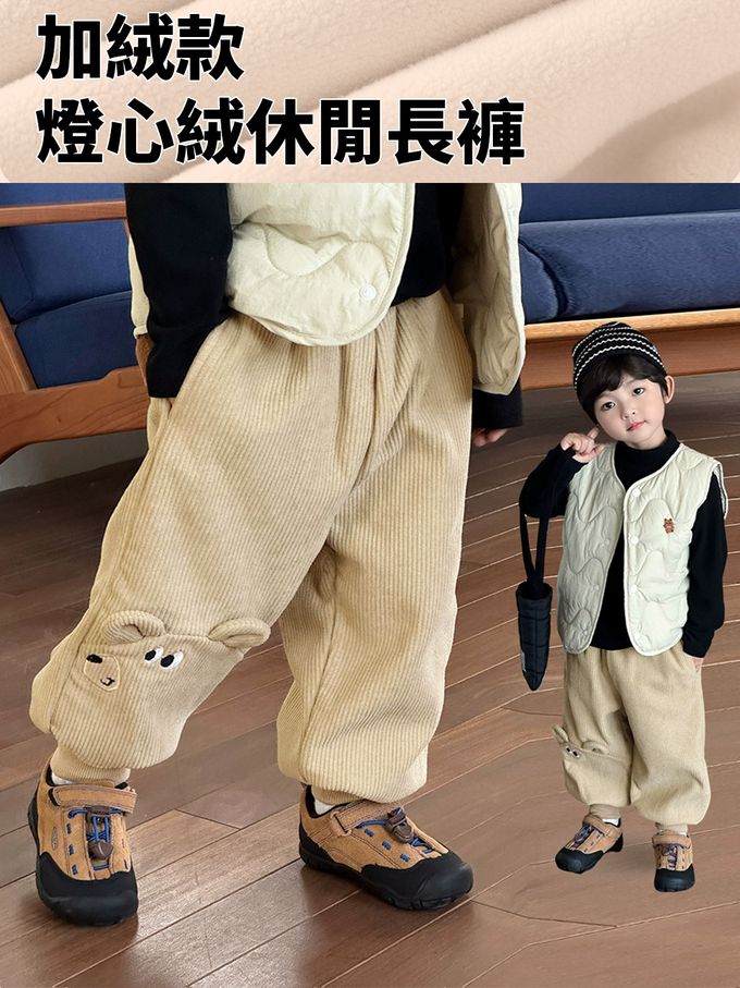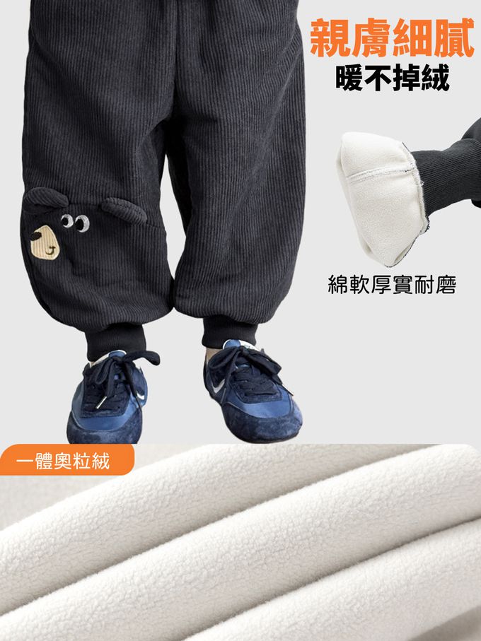 加絨款燈心絨休閒長褲-立體動物-卡其