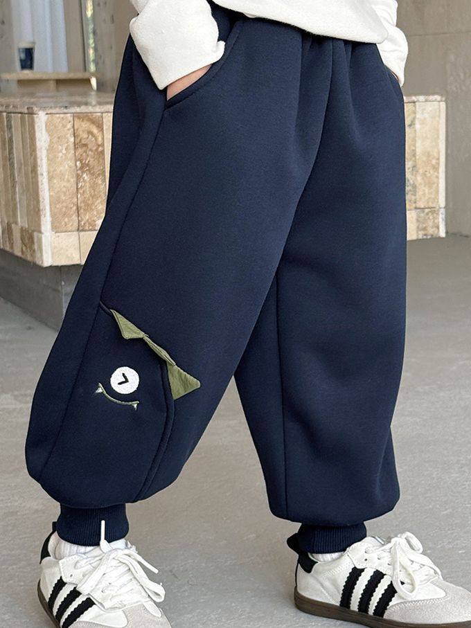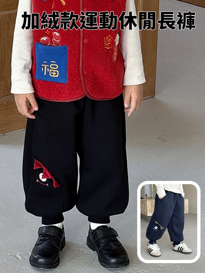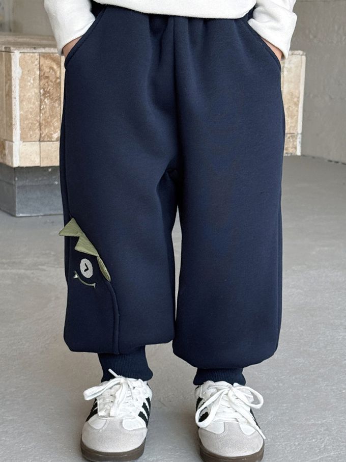 加絨款運動休閒長褲-立體小怪獸-藏青