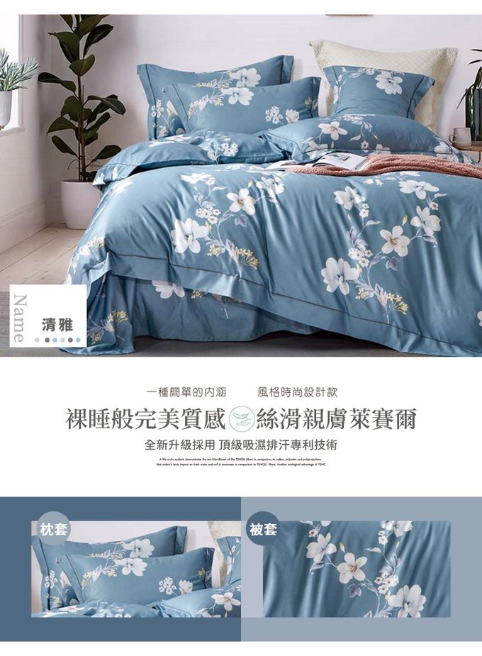 吸濕排汗天絲-清雅-雙人四件式床包鋪棉被套組