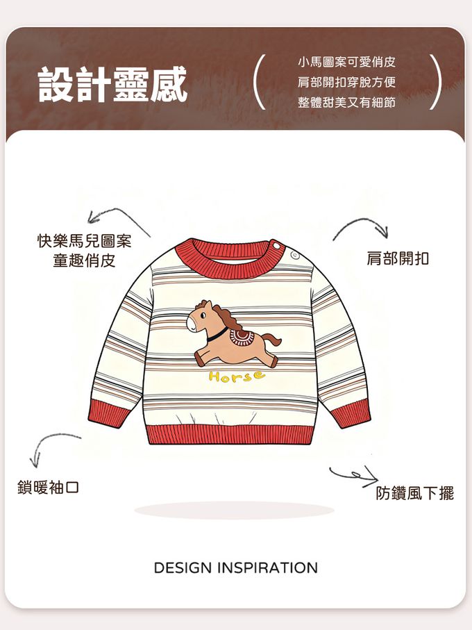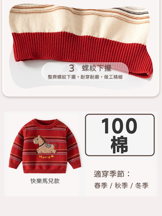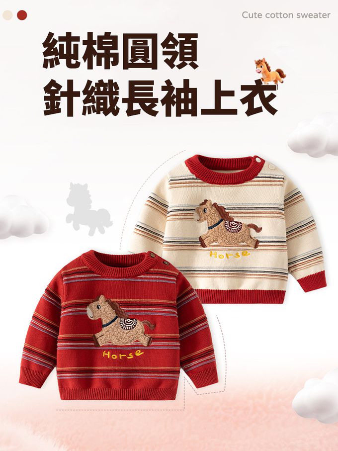 純棉圓領針織長袖上衣-快樂馬兒-卡其條紋