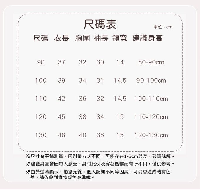 90cm、100cm(無肩扣)、110cm(無肩扣)、120cm(無肩扣)、130cm(無肩扣)