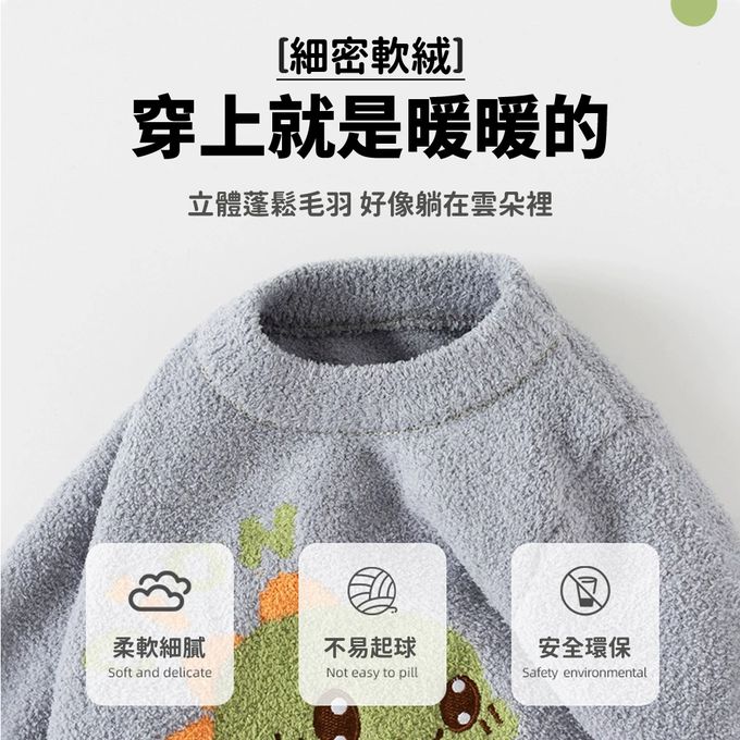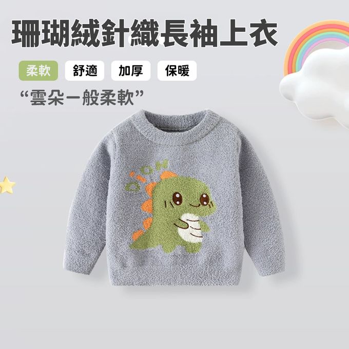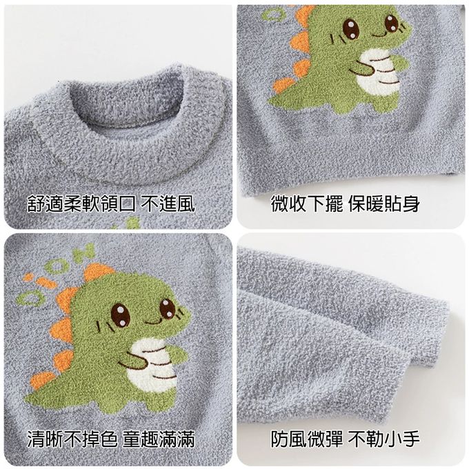 珊瑚絨針織長袖上衣-可愛恐龍-灰色