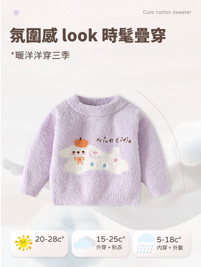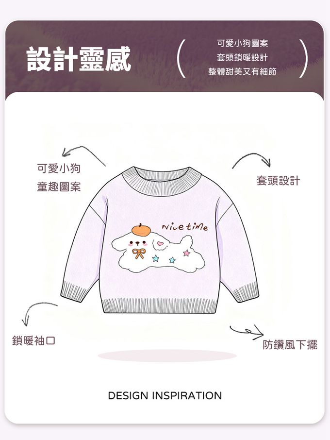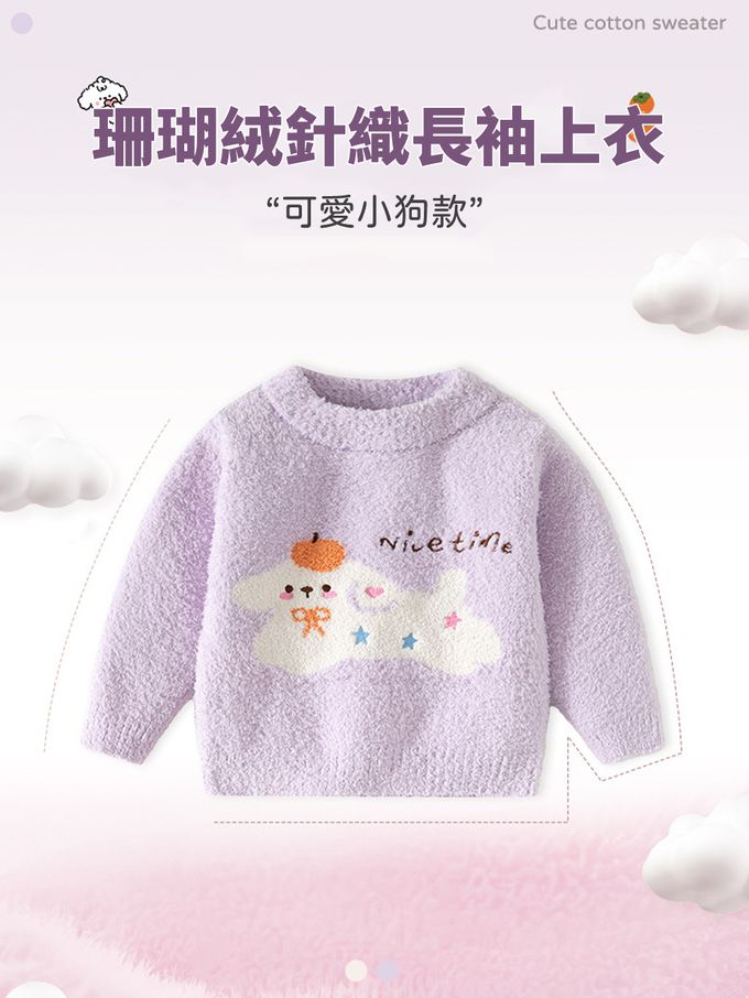 珊瑚絨針織長袖上衣-可愛小狗-紫色