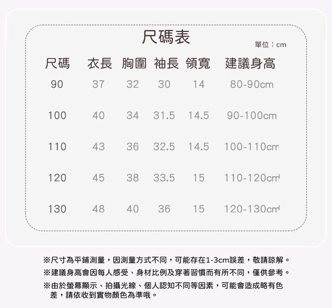 90cm、100cm、110cm、120cm、130cm