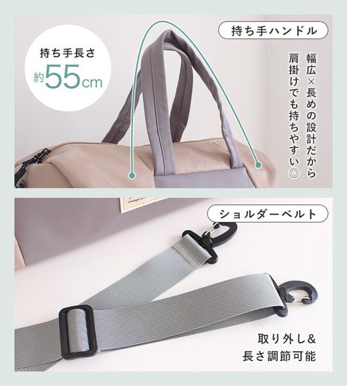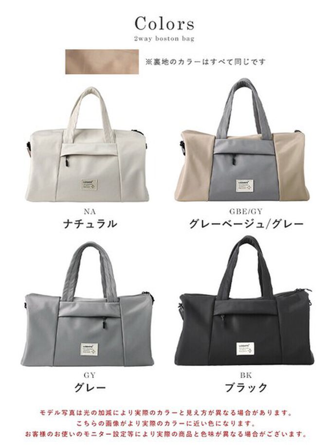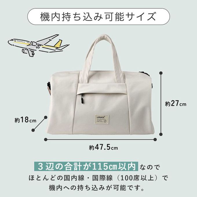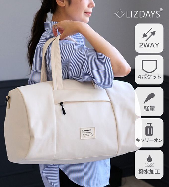 日本 LIZDAYS - 2way大容量防潑水輕盈波士頓包(登機包)-米白 (47.5x27x18cm)